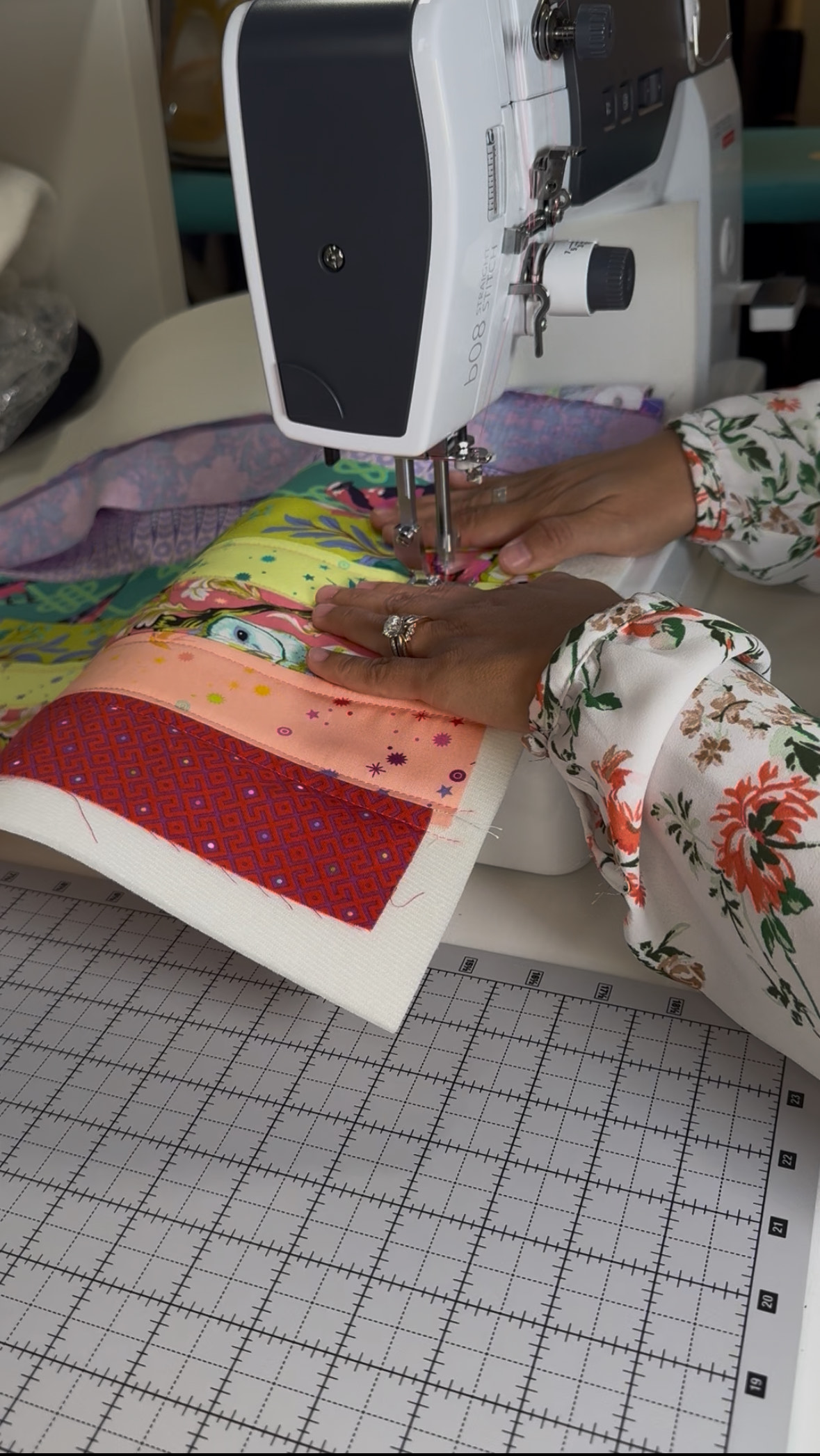 Lay out the strips in your preferred order. If using directional prints, make sure all graphics are oriented correctly.