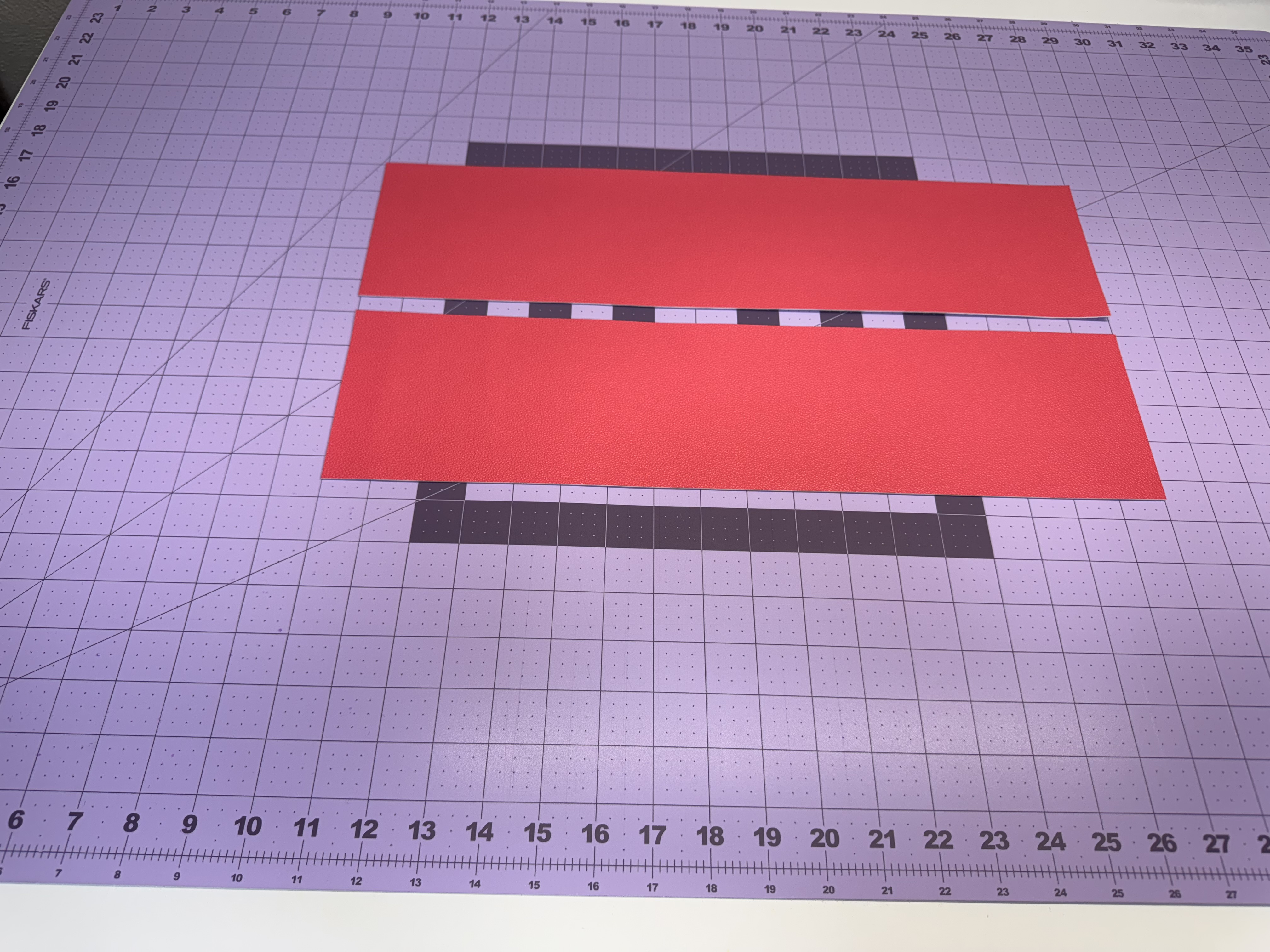 Cut (2) vinyl strips – each measuring 14 ½” W x 2 ½” L from the vinyl fabric.