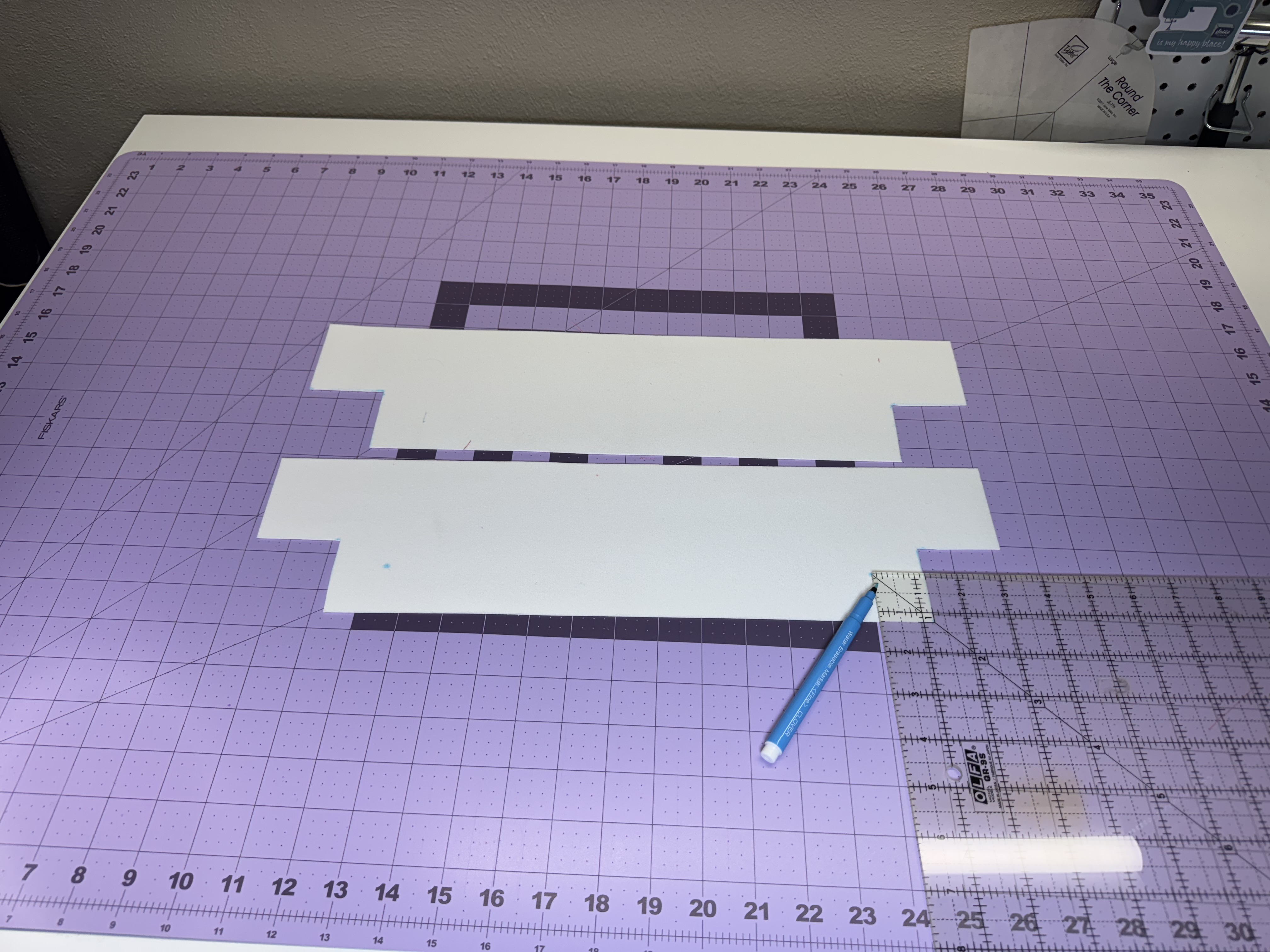 Create 2 markings on the wrong side of each vinyl accent where the bag feet will be placed as follows: