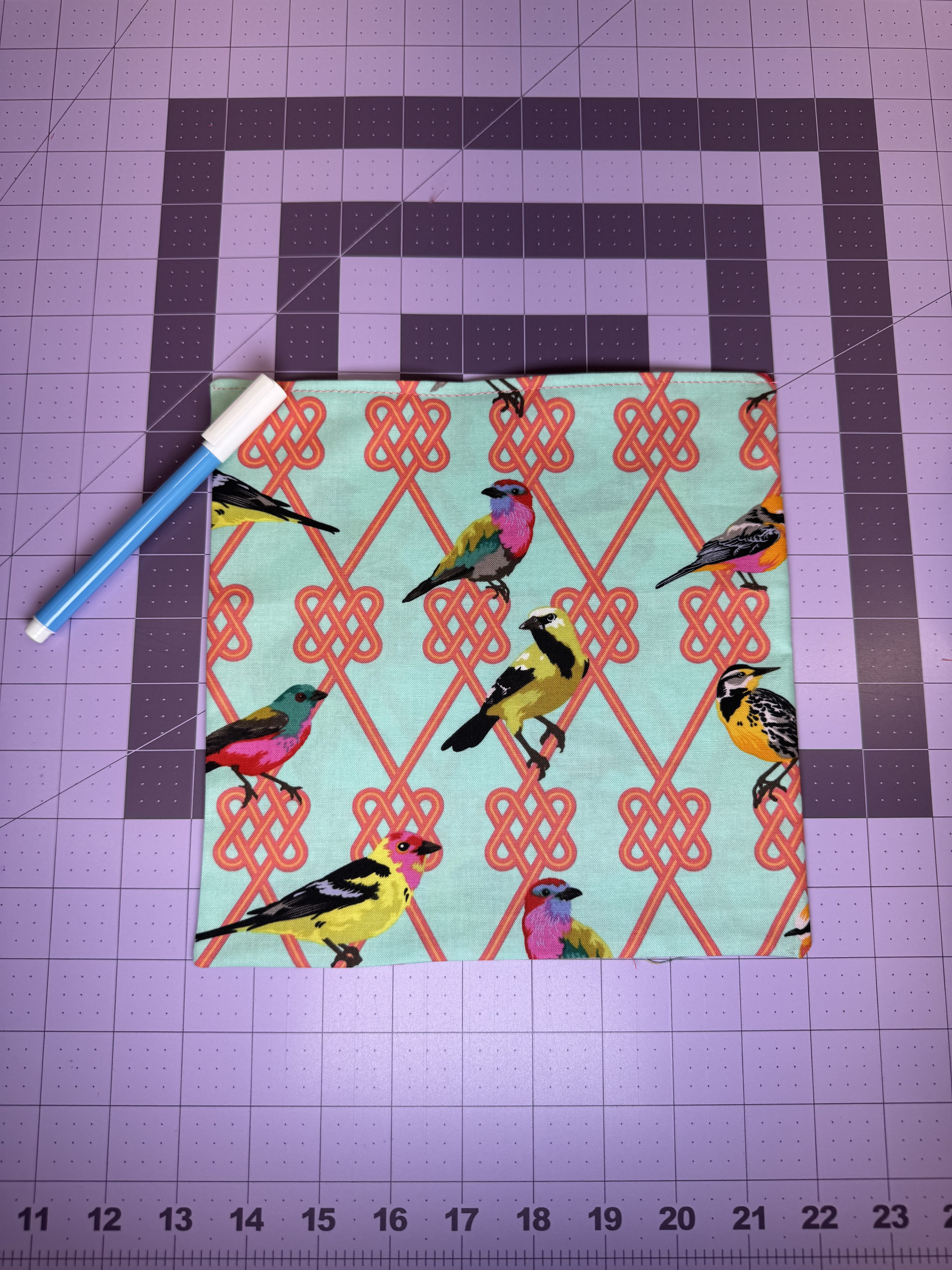 Cut (2) 9½” squares from the FQs of exterior fabric (for back pocket)
