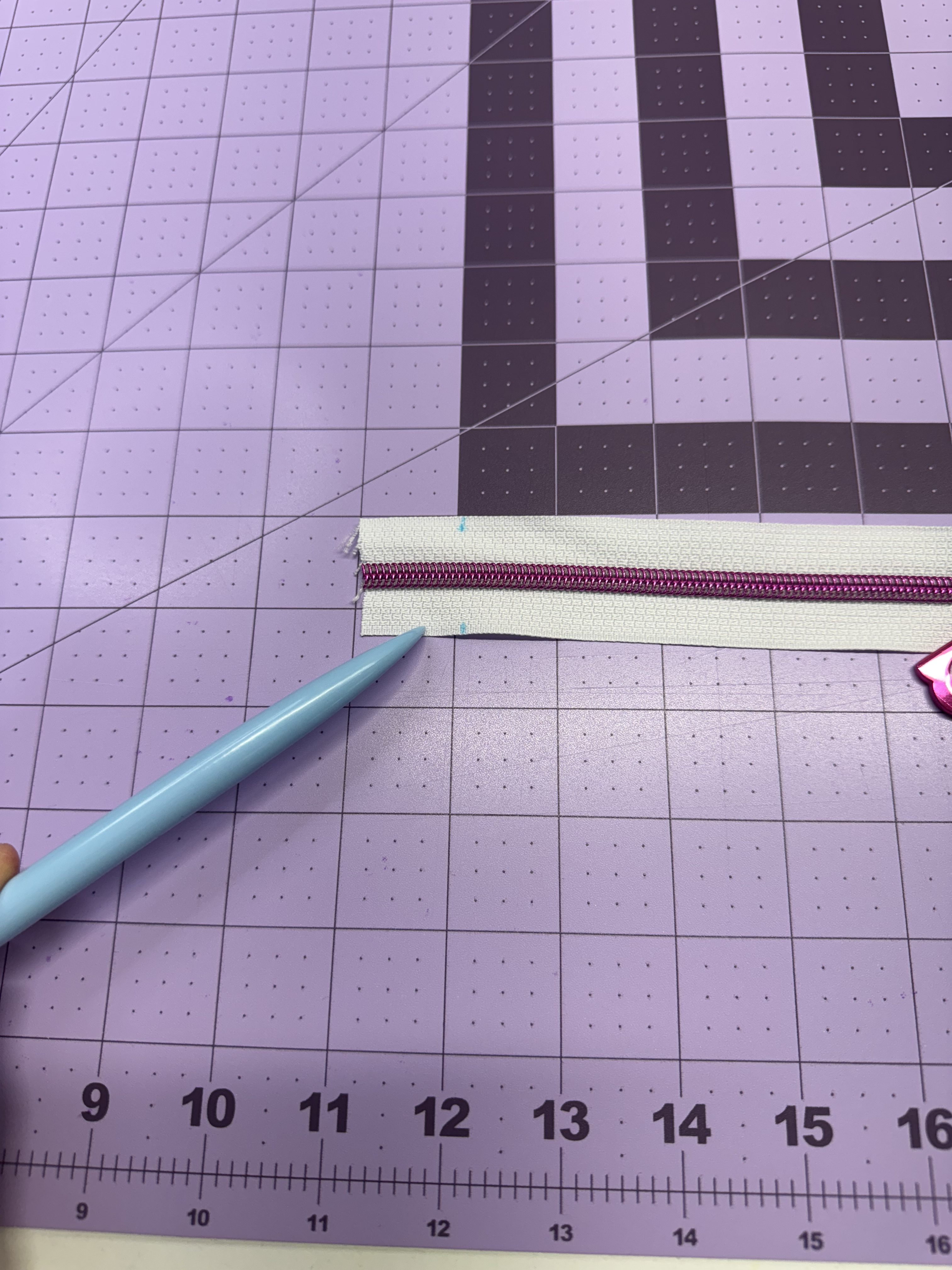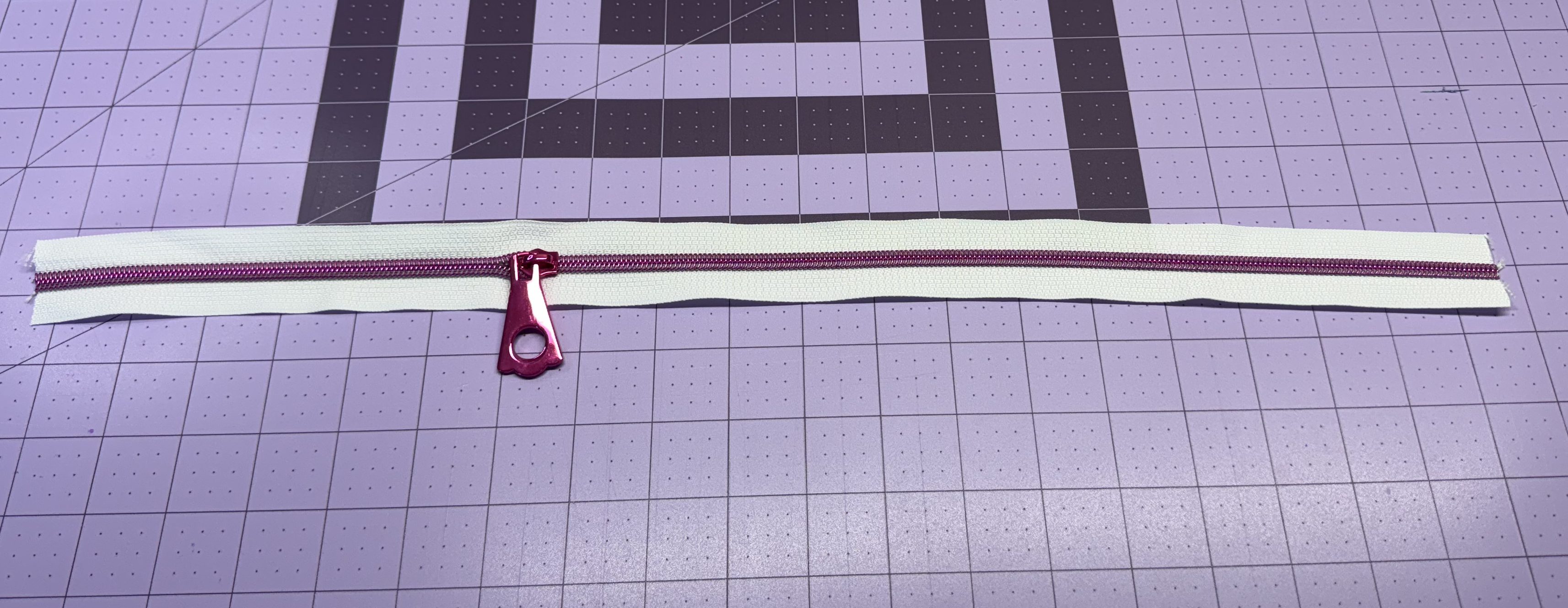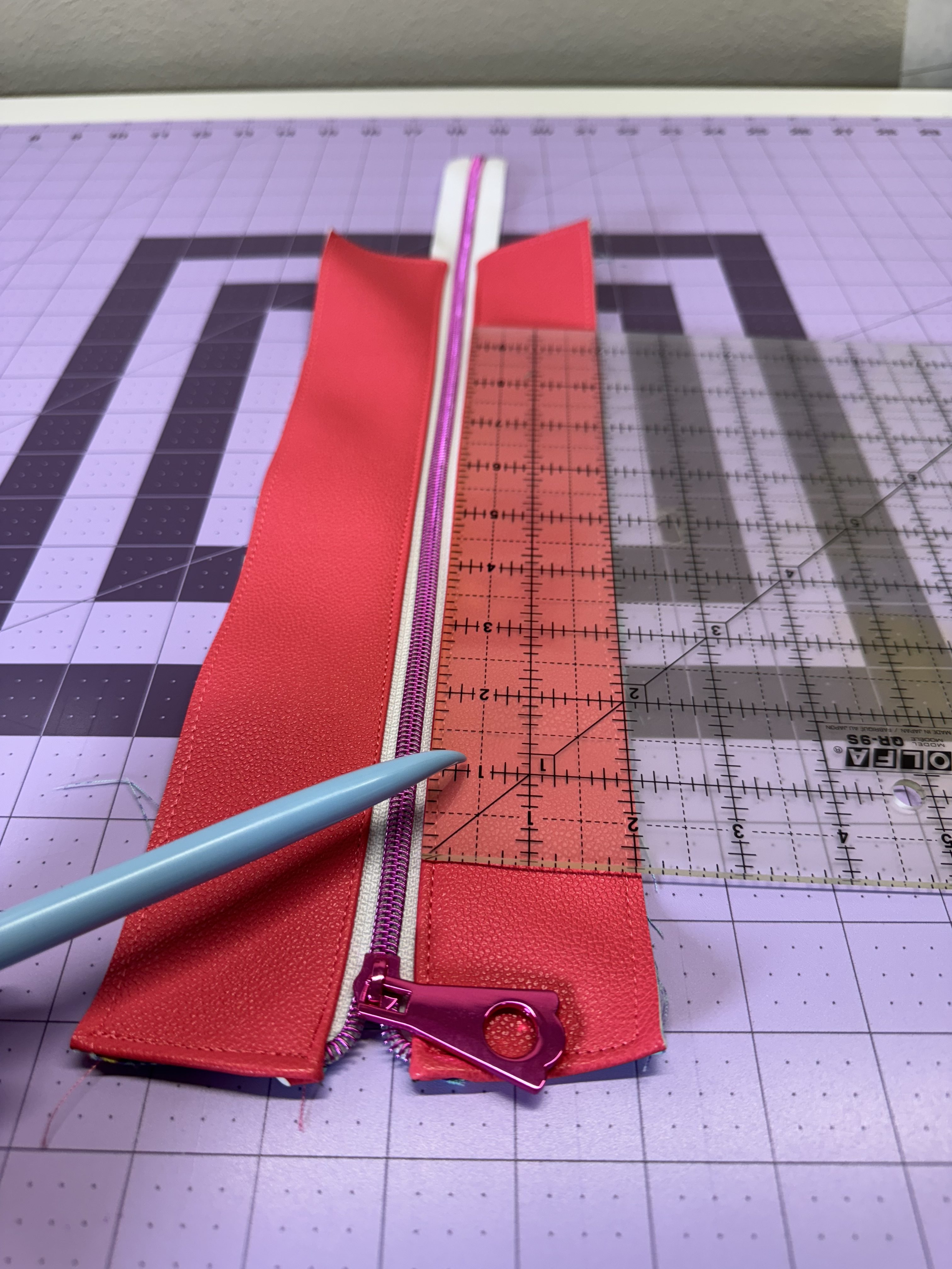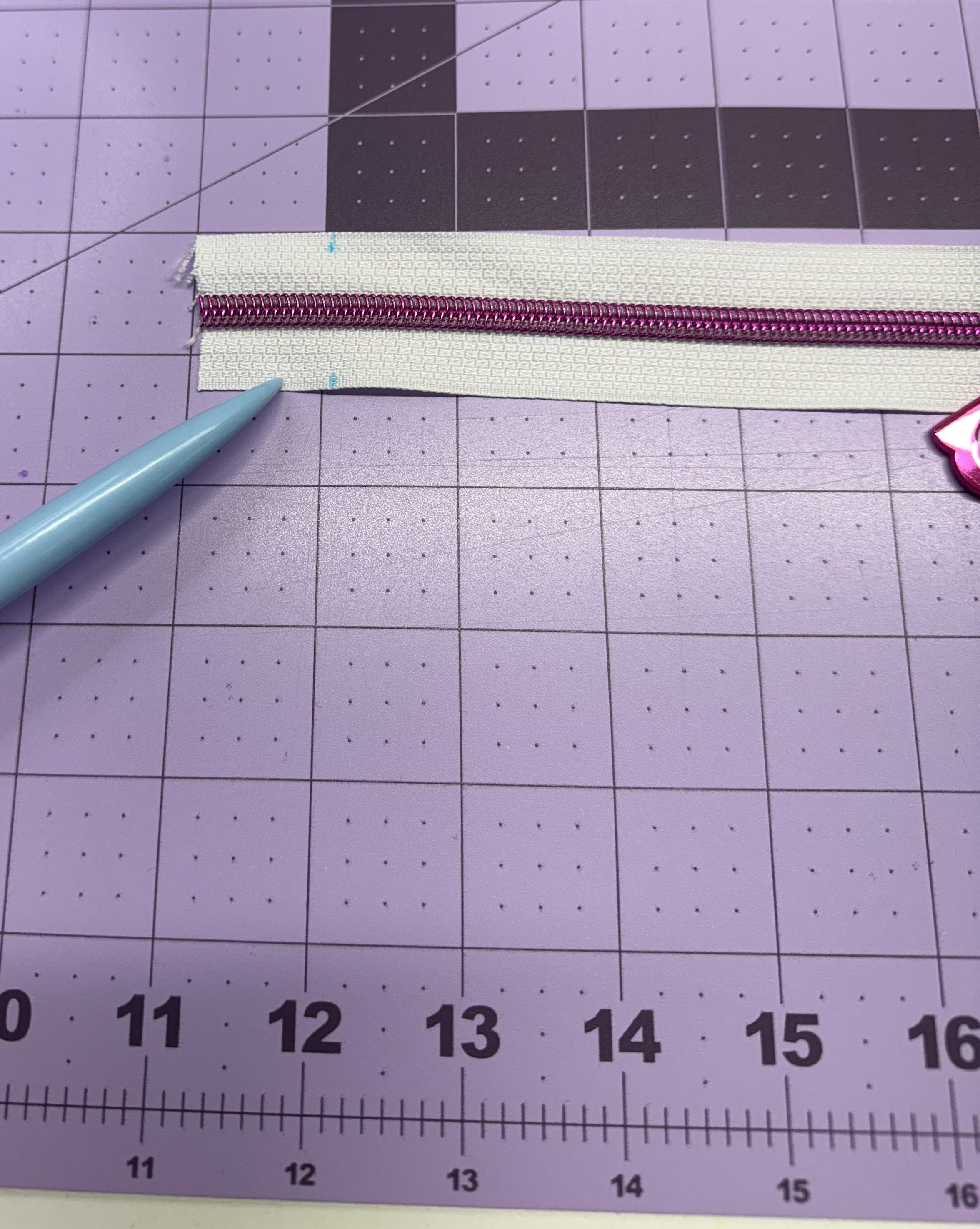 If necessary, trim the zipper panel to make sure it measures 2” in length, making sure the zipper is centered and straight.