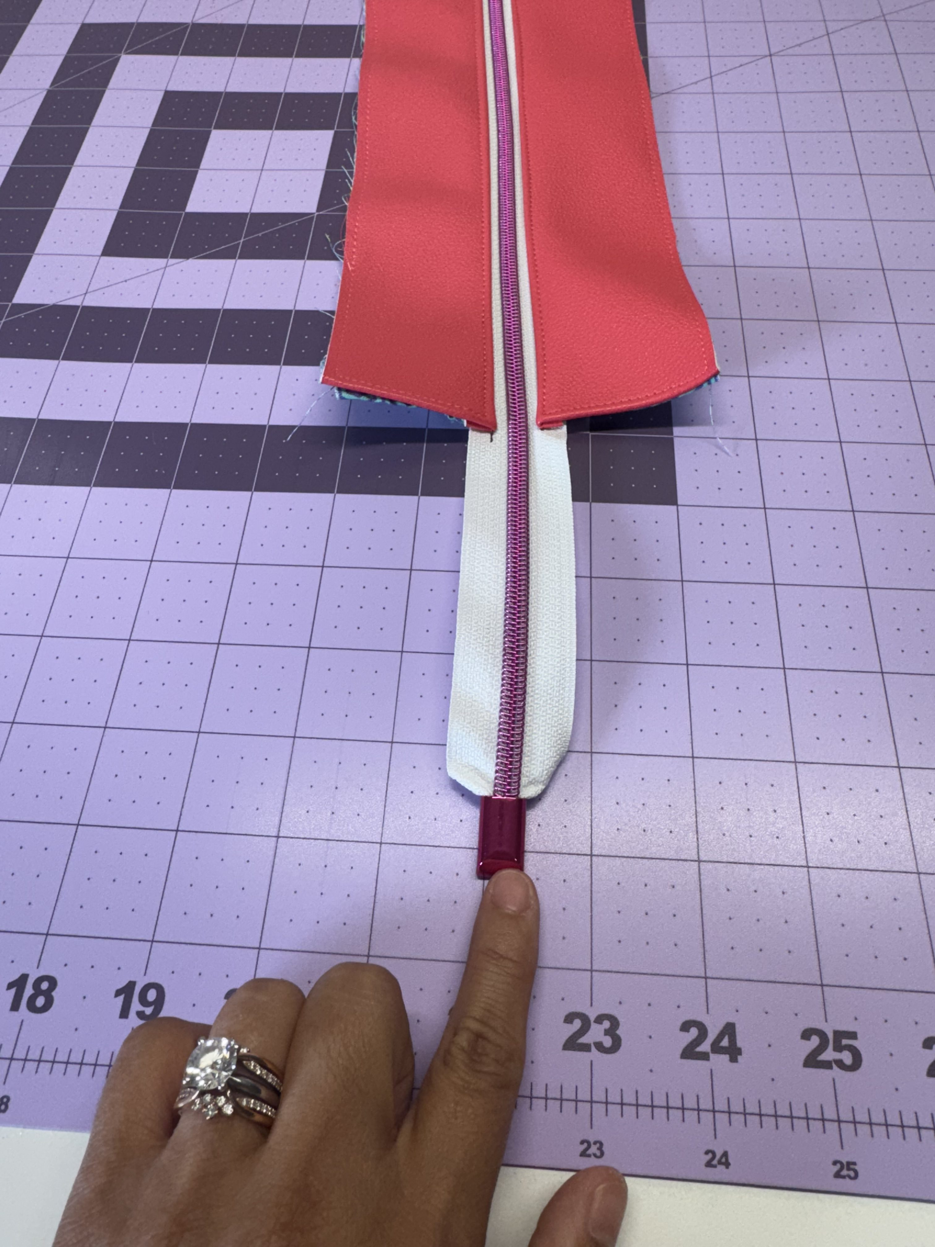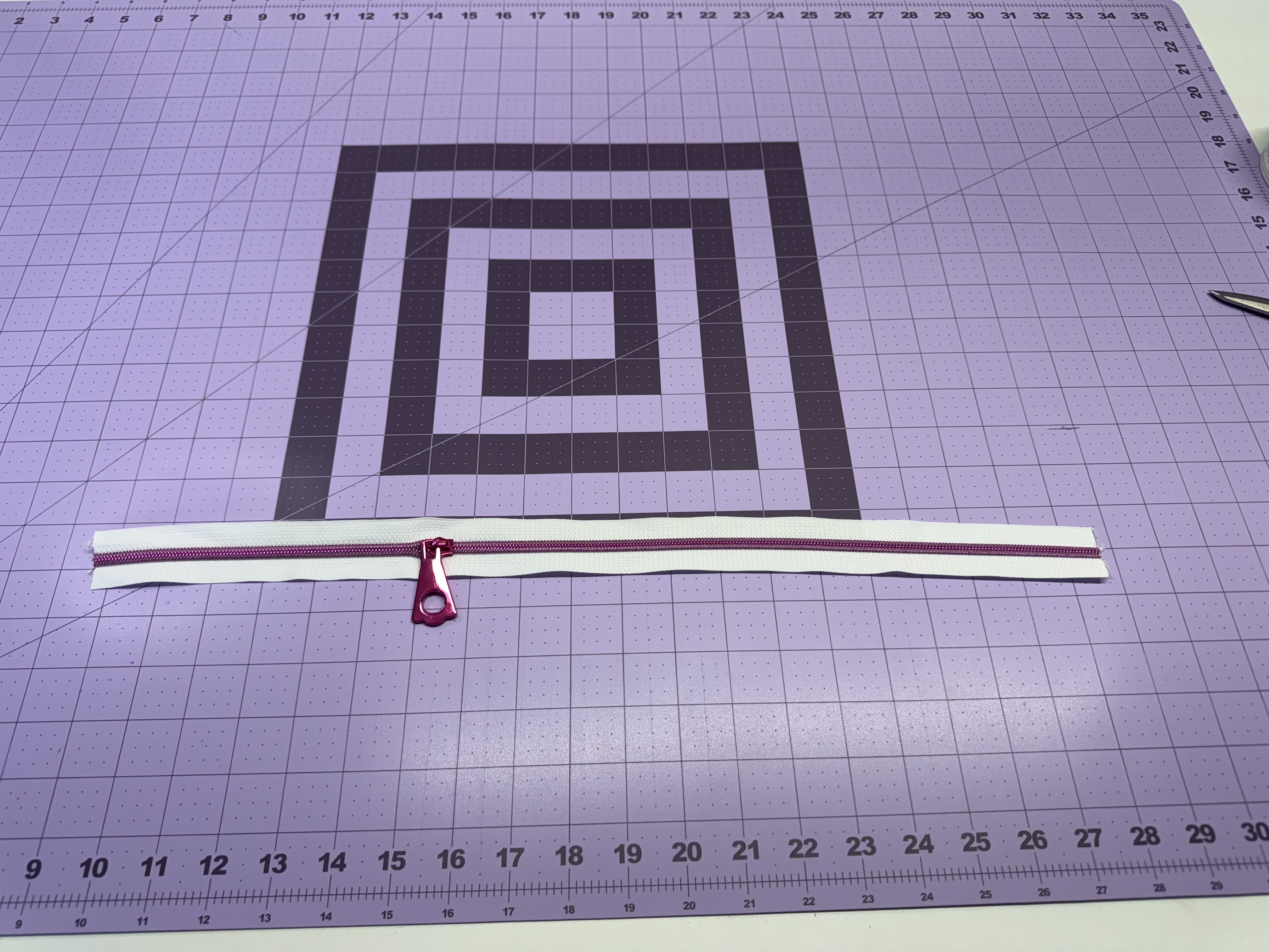 Cut a 20” length of zipper tape and insert a zipper pull. If using a premade zipper, ensure it is 20”.