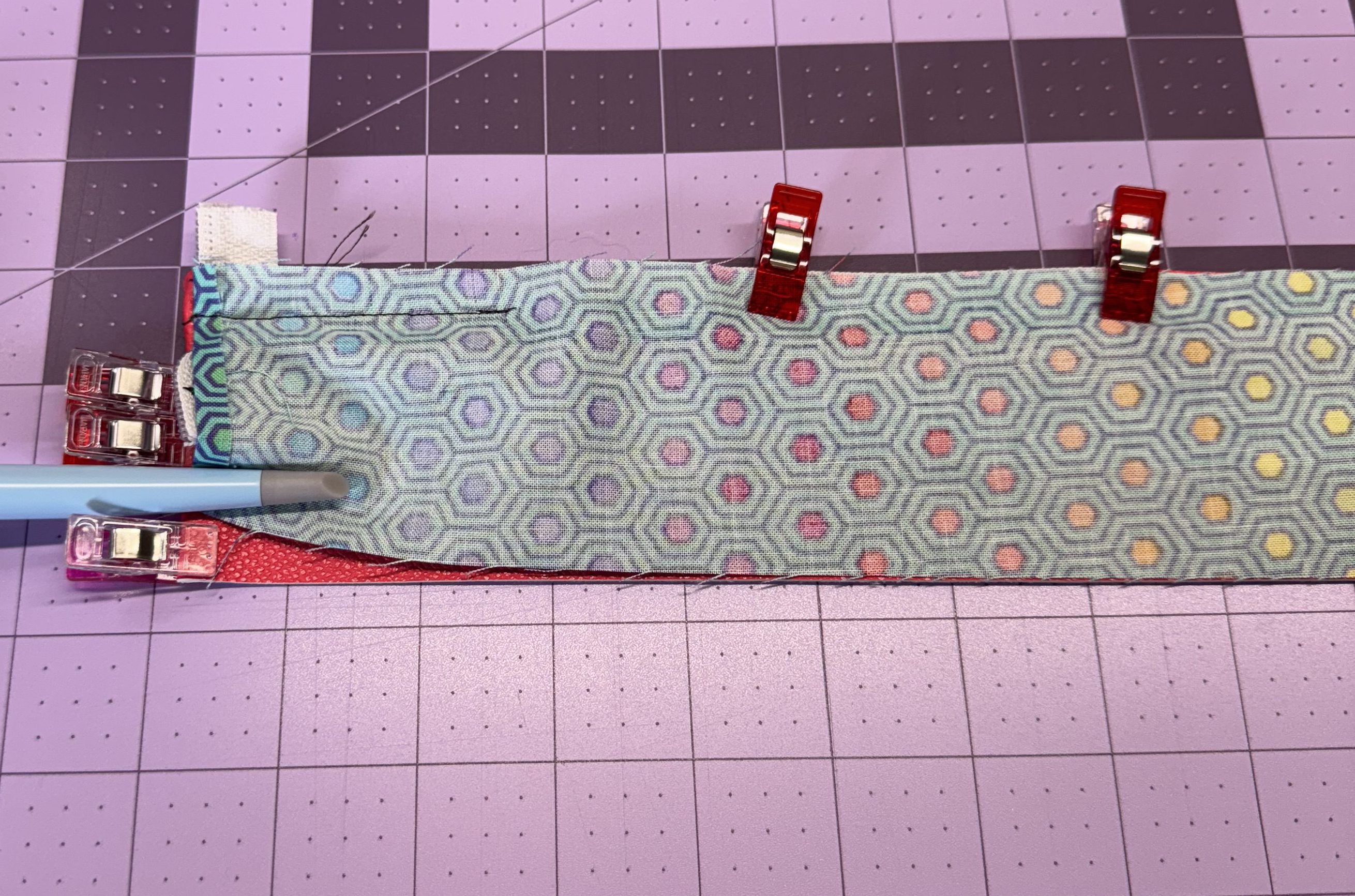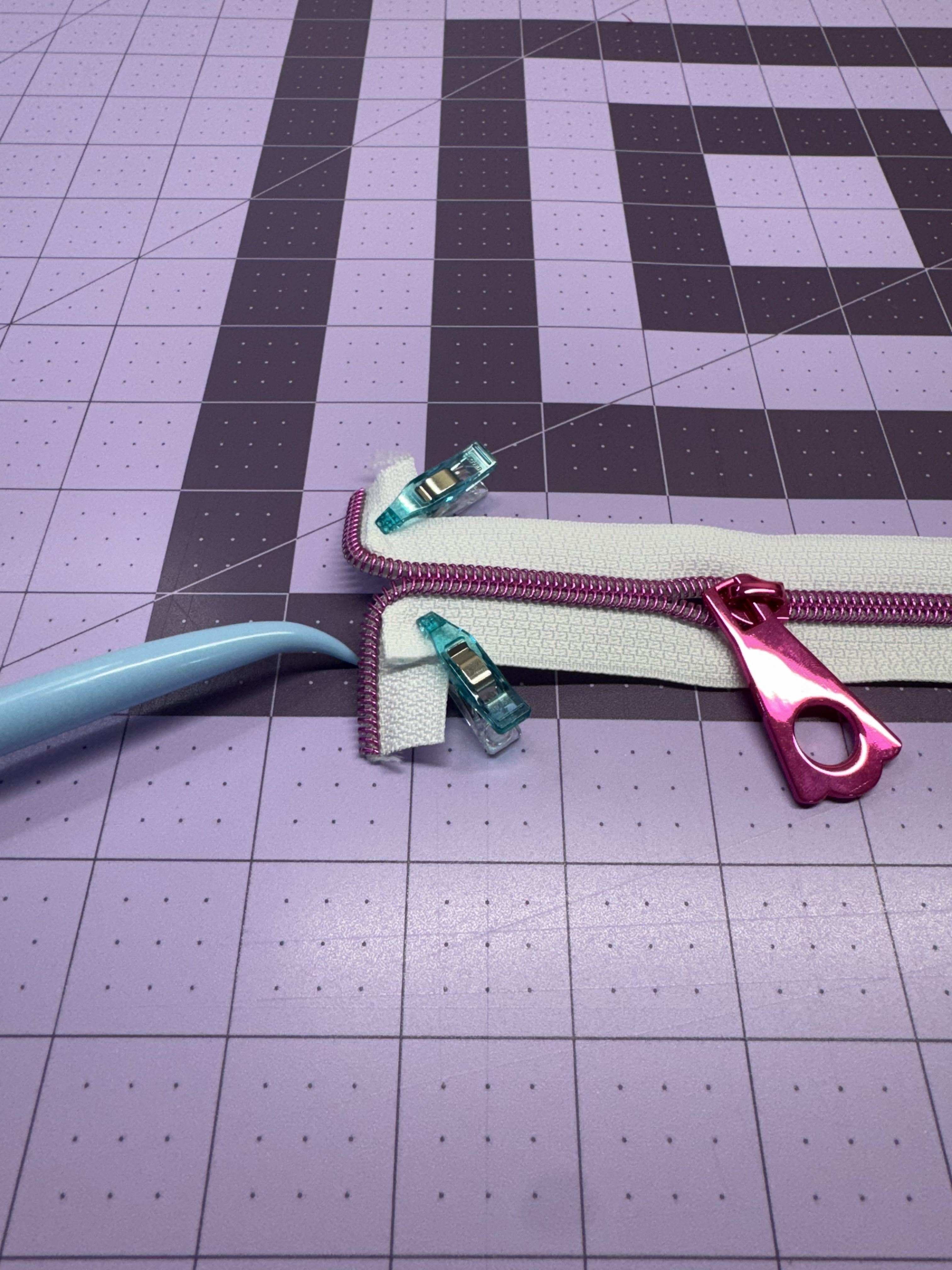 Pin or clip, then sew with a ⅜” seam using the zipper foot.