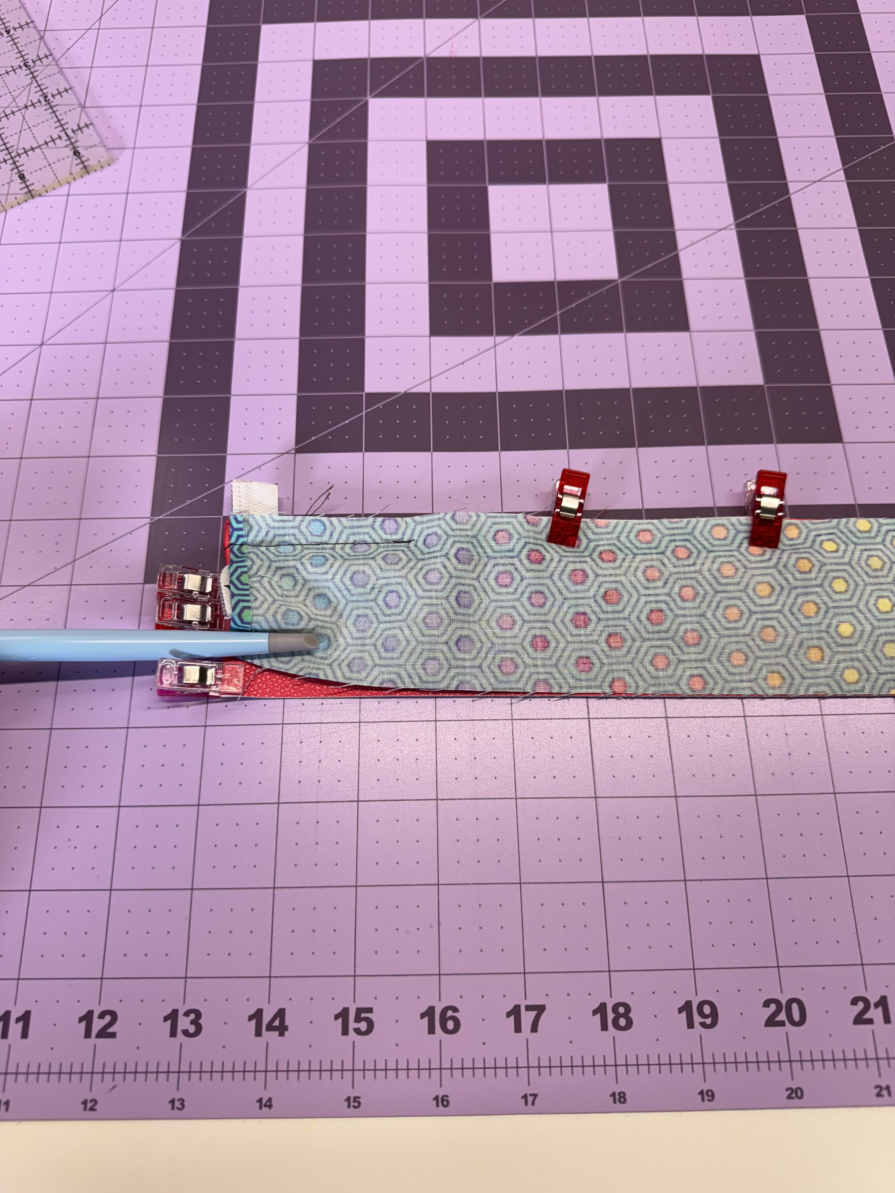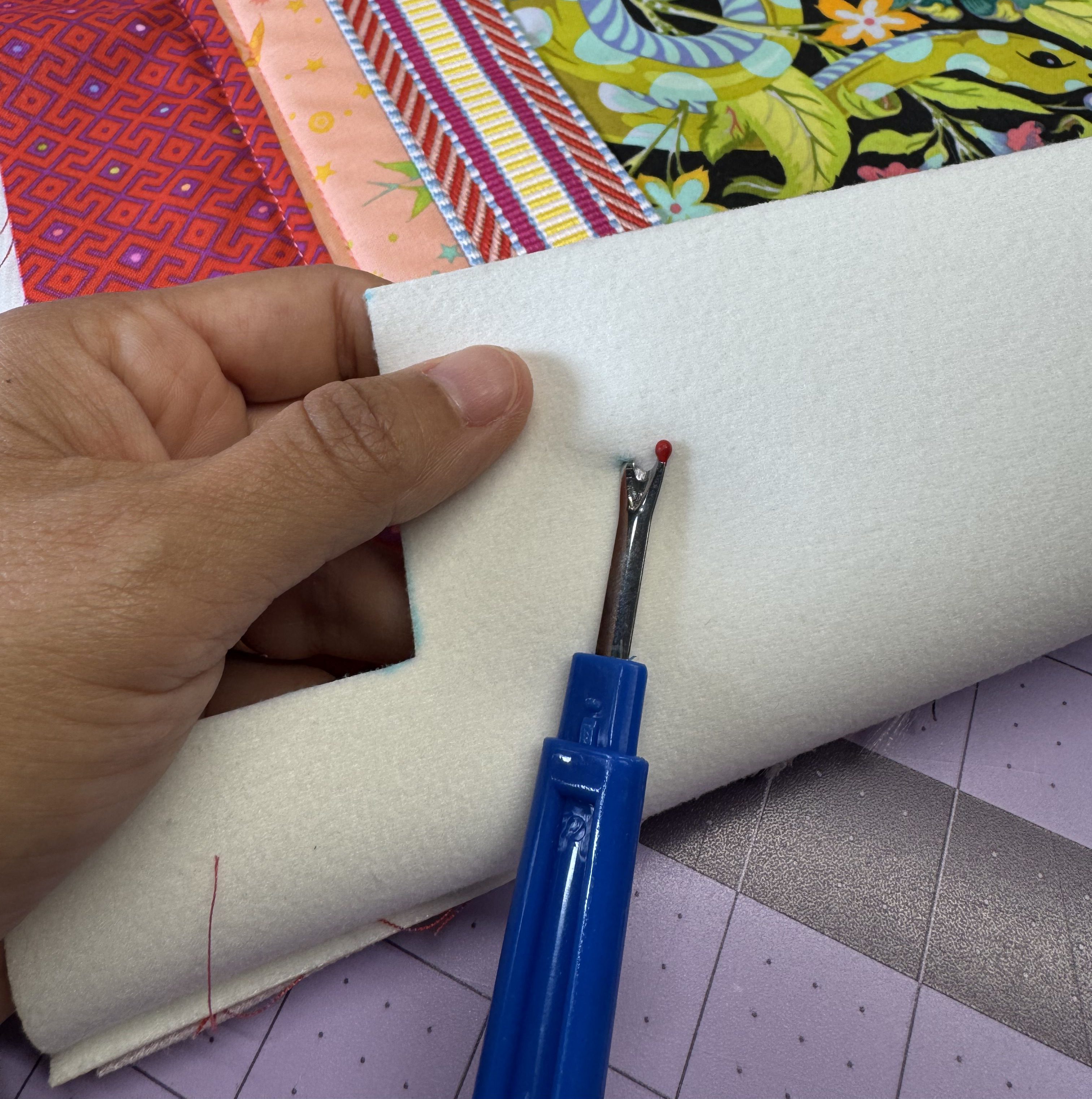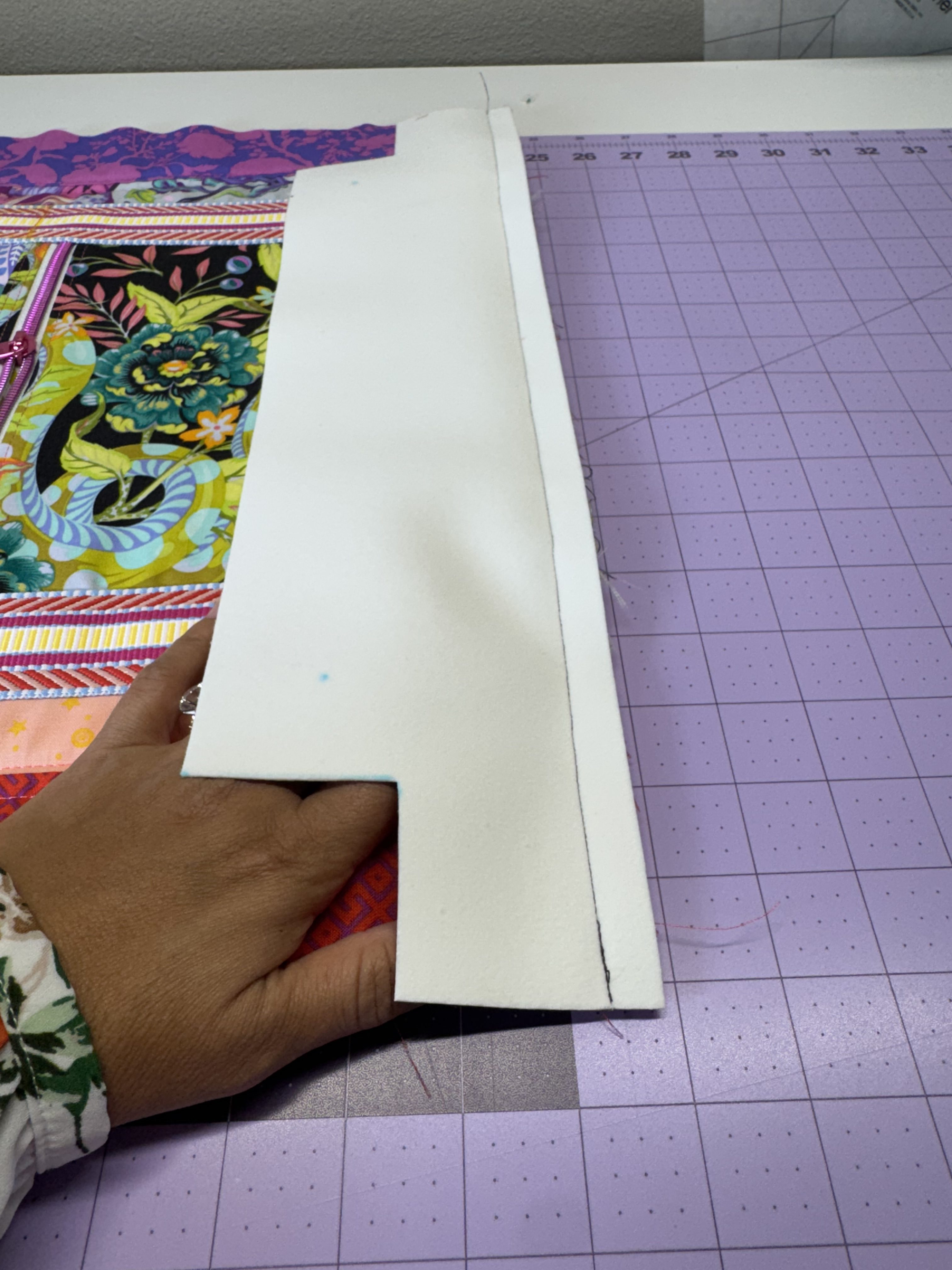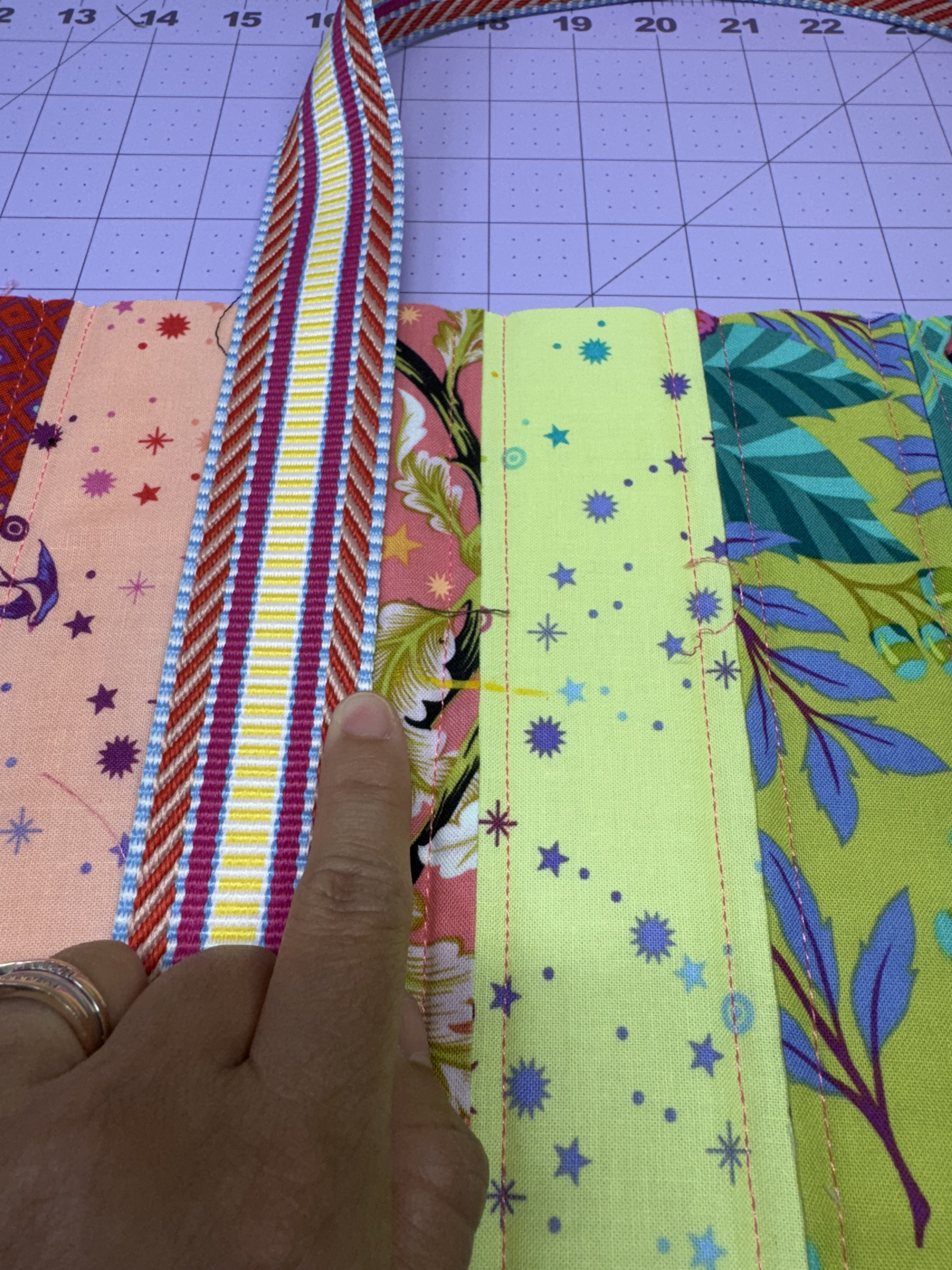 Stitch around the 7½” x ½” rectangle using a short stitch length for accuracy.