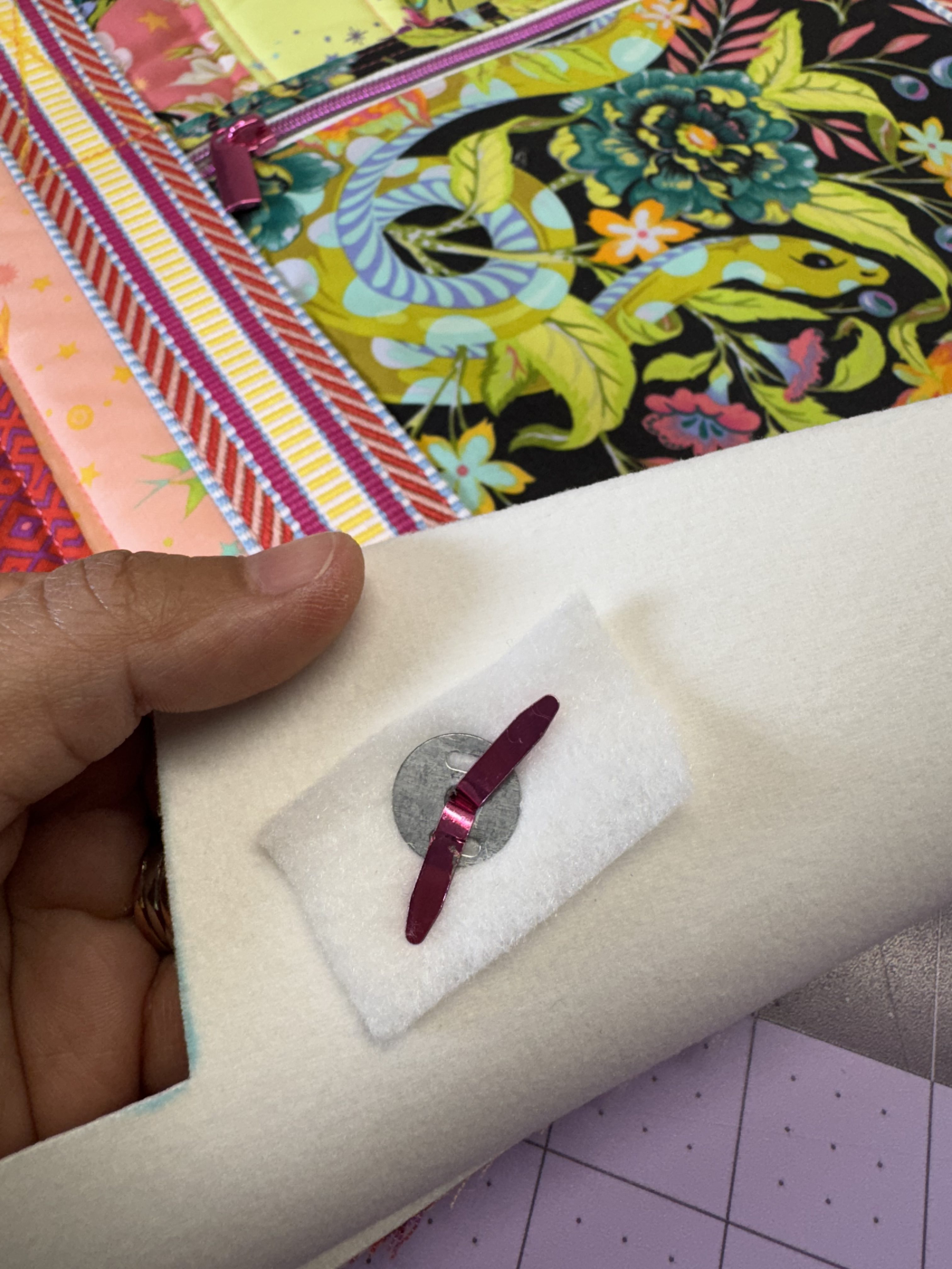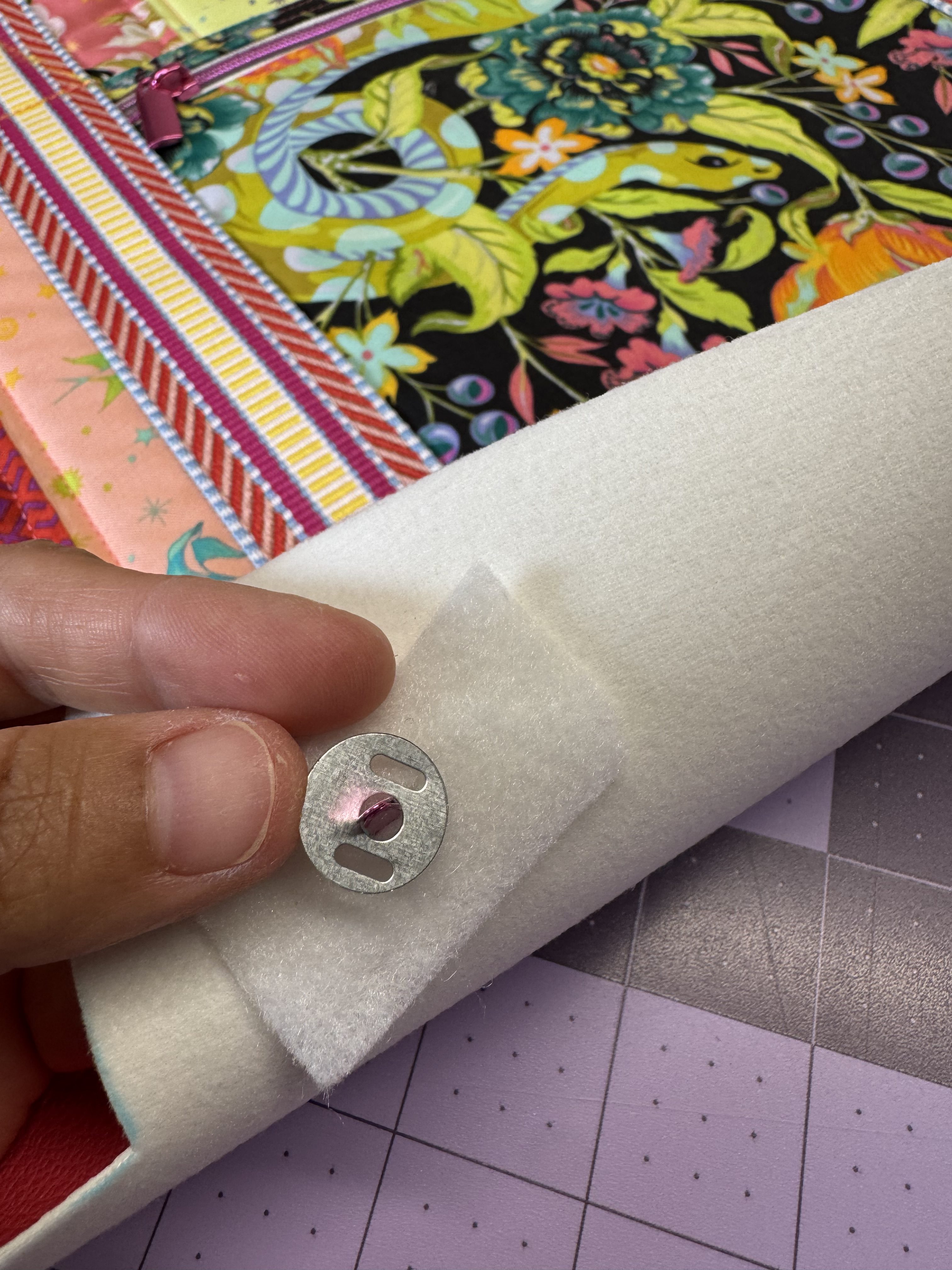 - Pro Tip: Use a small square of fusible interfacing between the vinyl and the metal post for extra stability, and cover the post inside the bag with a fabric scrap or interfacing if desired.