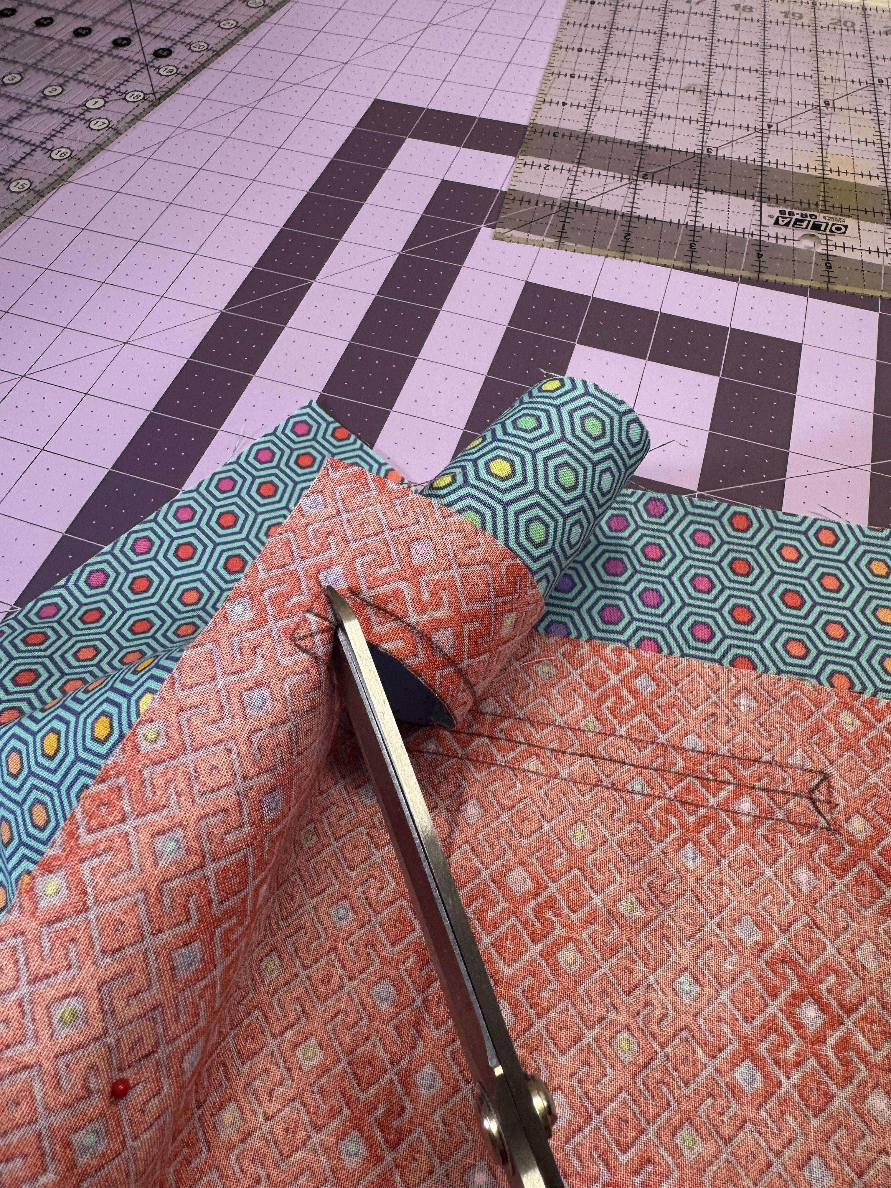 Cut (4) 10” squares from the FQs of exterior fabric (for front zipper pocket)