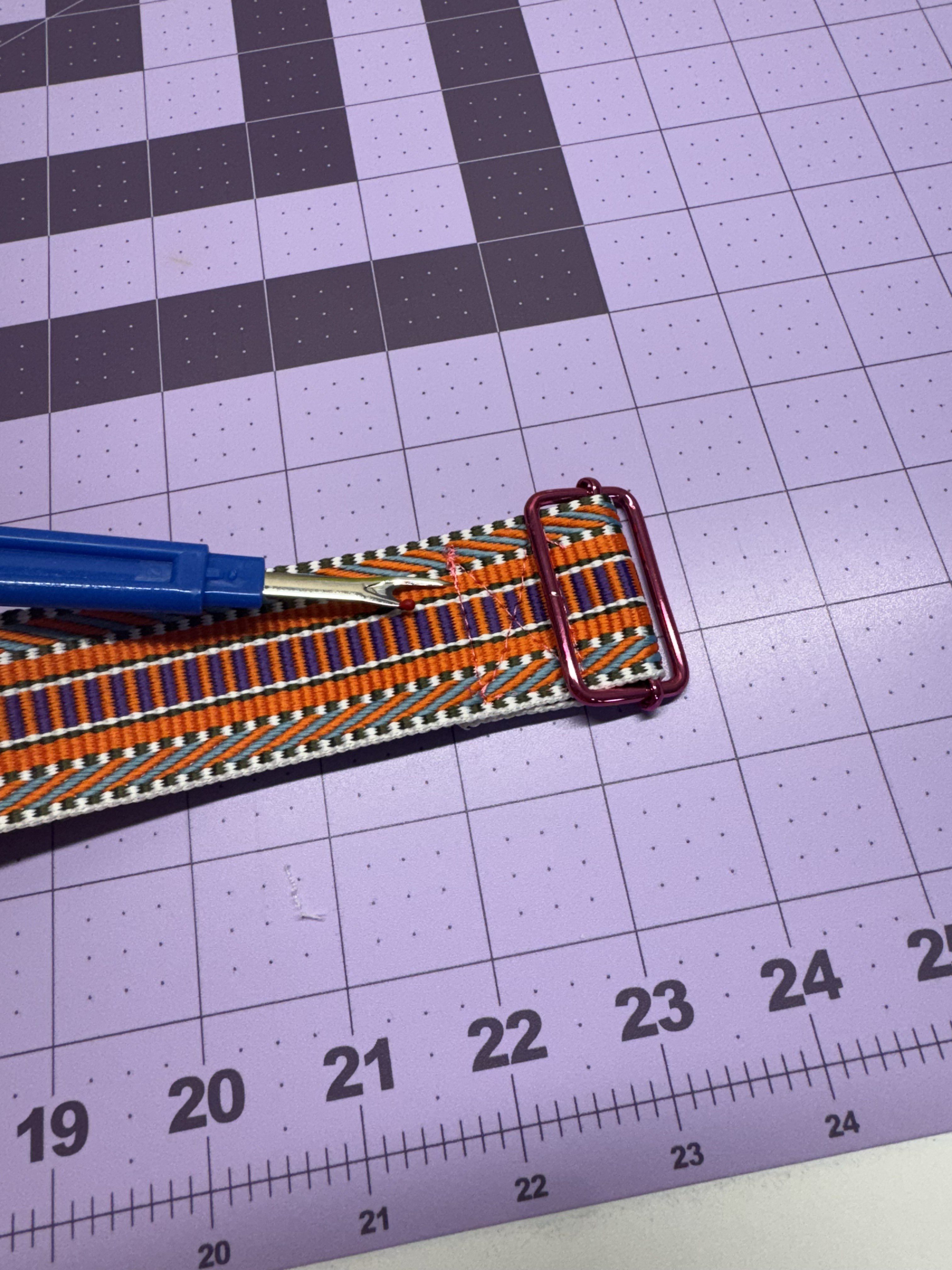 Cut (2) strips of 1½” webbing, each measuring 2½” long.