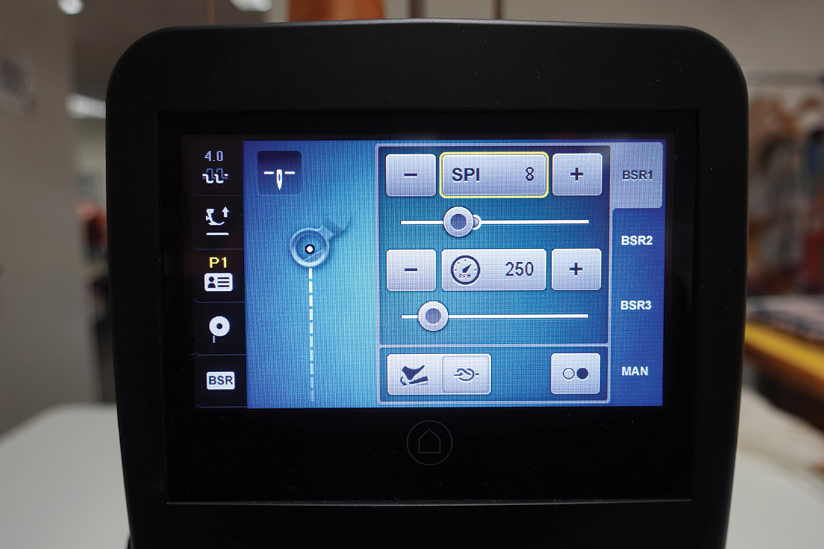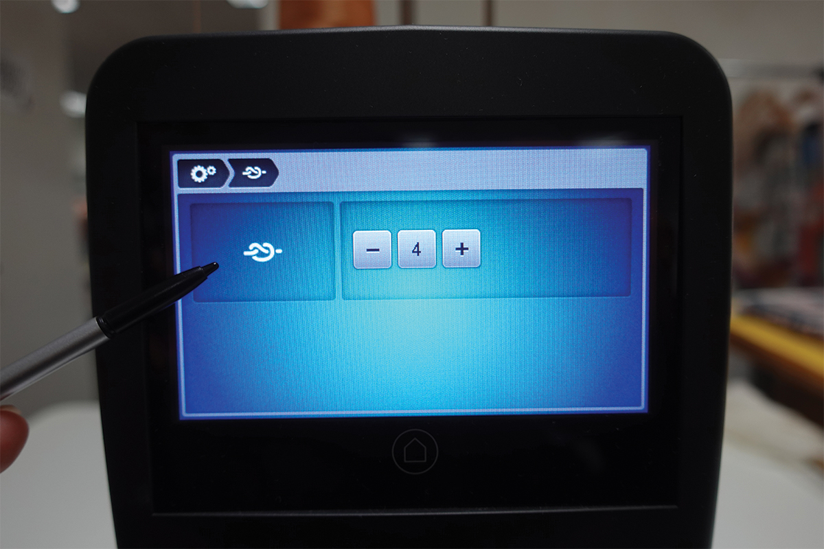 En el menú de la pantalla táctil, configura los siguientes ajustes para empezar a acolchar: