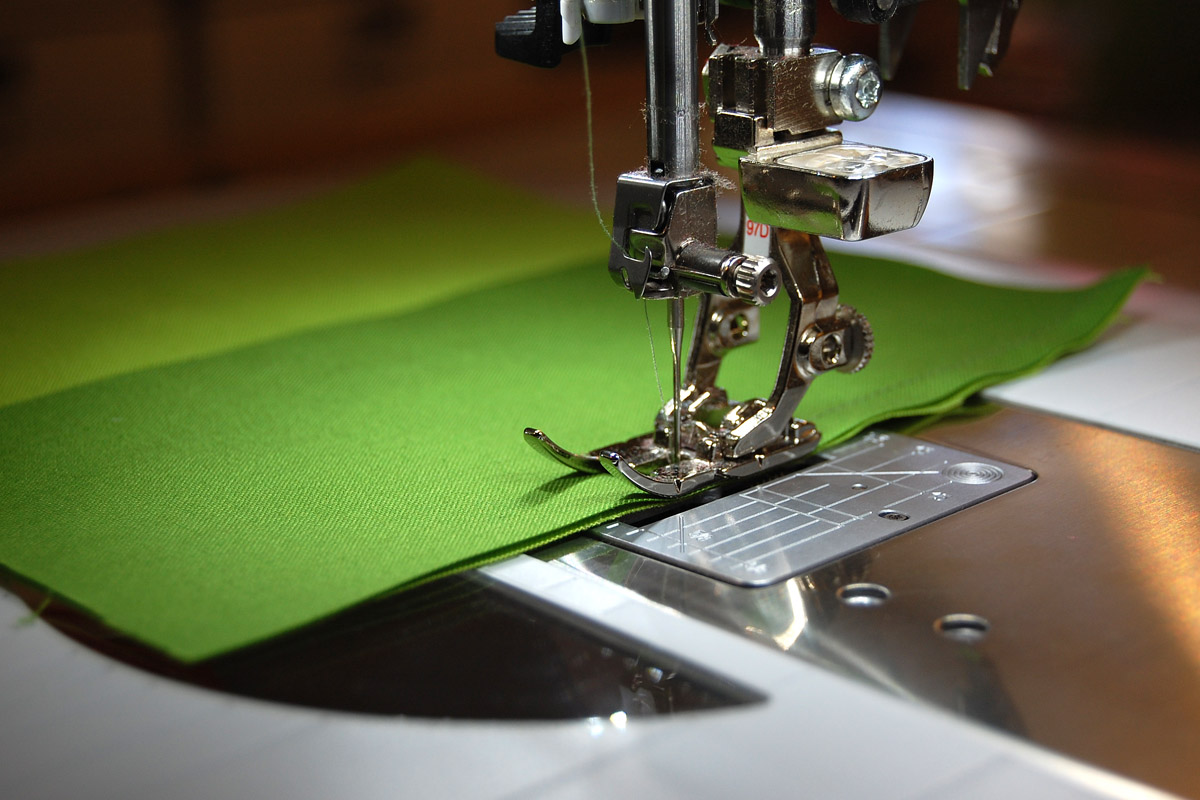 Align edges of patchwork with the edge of the quarter inch piecing foot