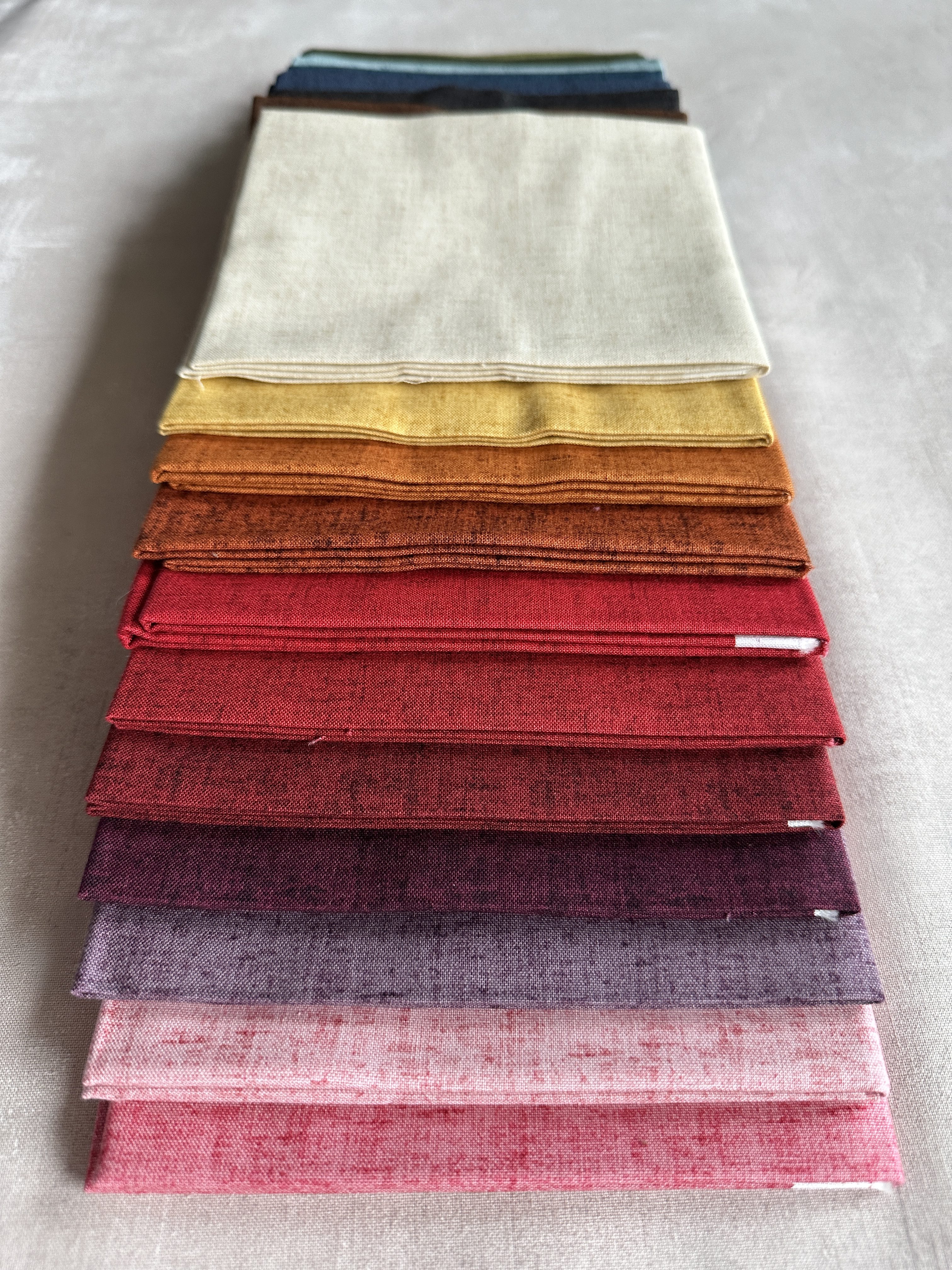 I found the perfect FQ bundle for my Southwest Trails Quilt! For inquiring minds, it’s a bundle of Timeless Linen basics by Stacy West, from Henry Glass Fabrics.