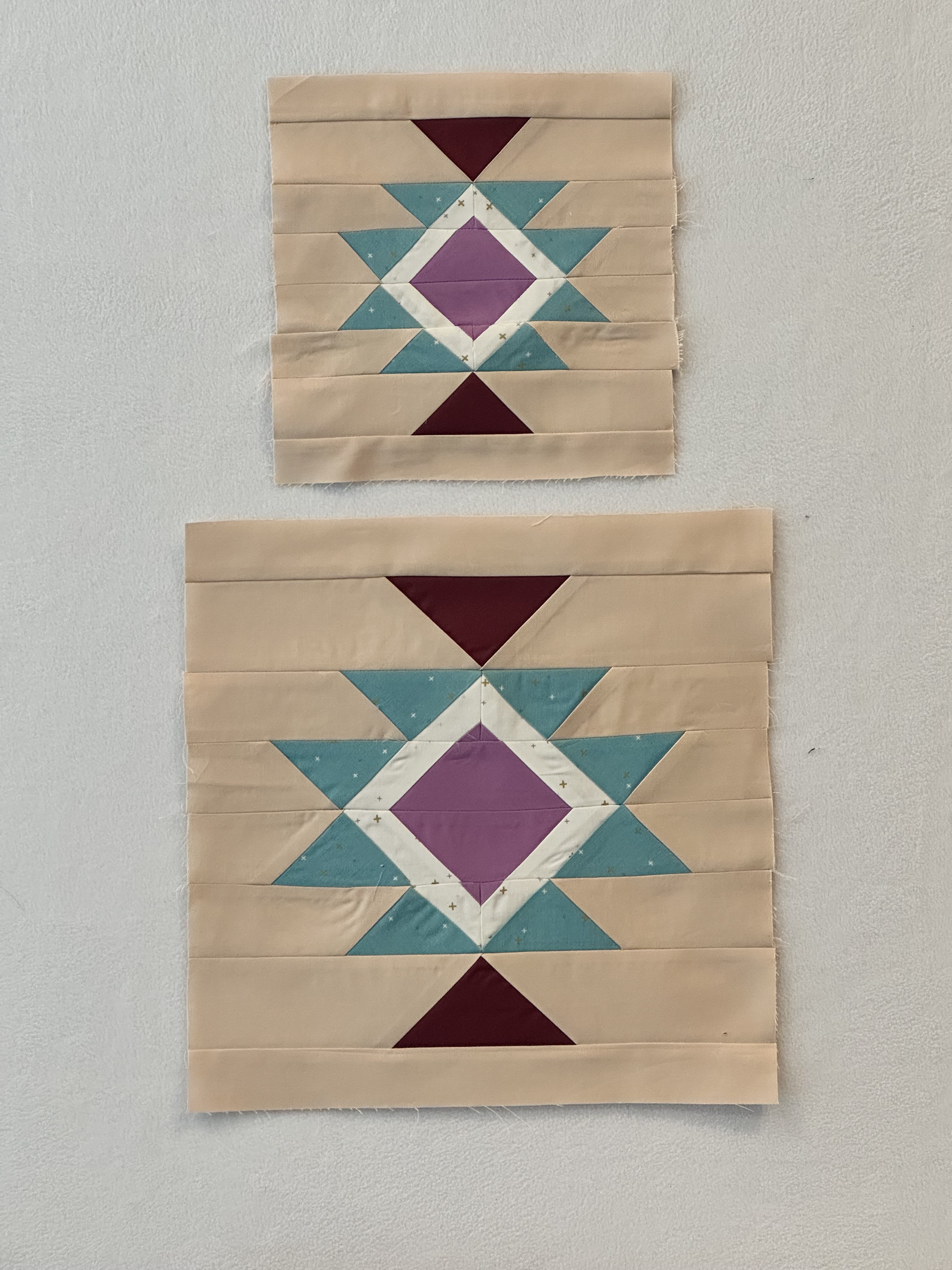 My Desert Peaks blocks. Matching points was tricky due to thicke seams, but thank you for the tip to sew matching points first and them the full seam