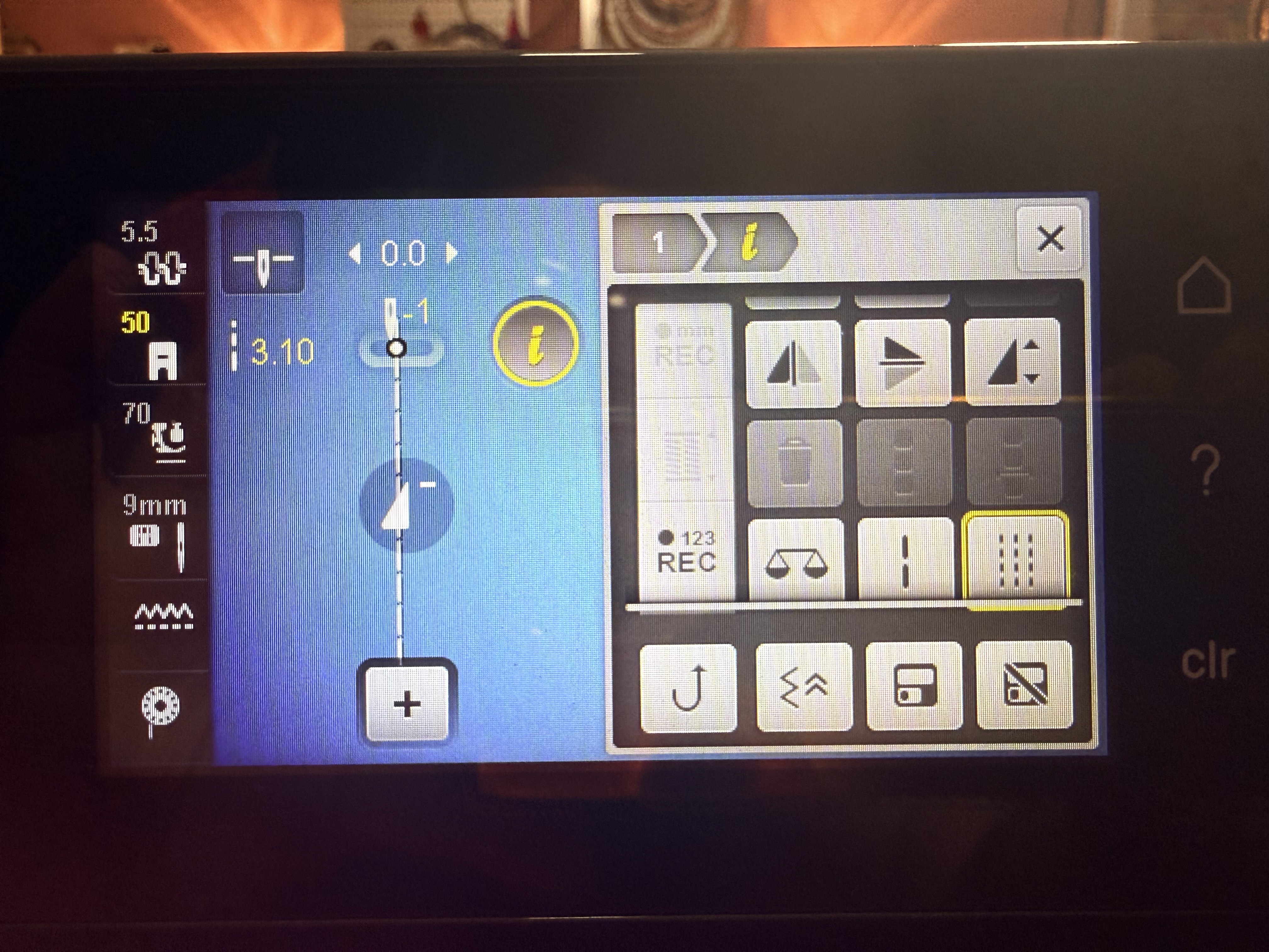 Puedes encontrar fácilmente la puntada triple en tu BERNINA 590 en el menú de puntadas — busca el ícono de puntada triple recta o su número (consulta tu manual para tu versión específica). Es perfecta para añadir textura, enfatizar formas o lograr un look de costura a mano en cualquier diseño.