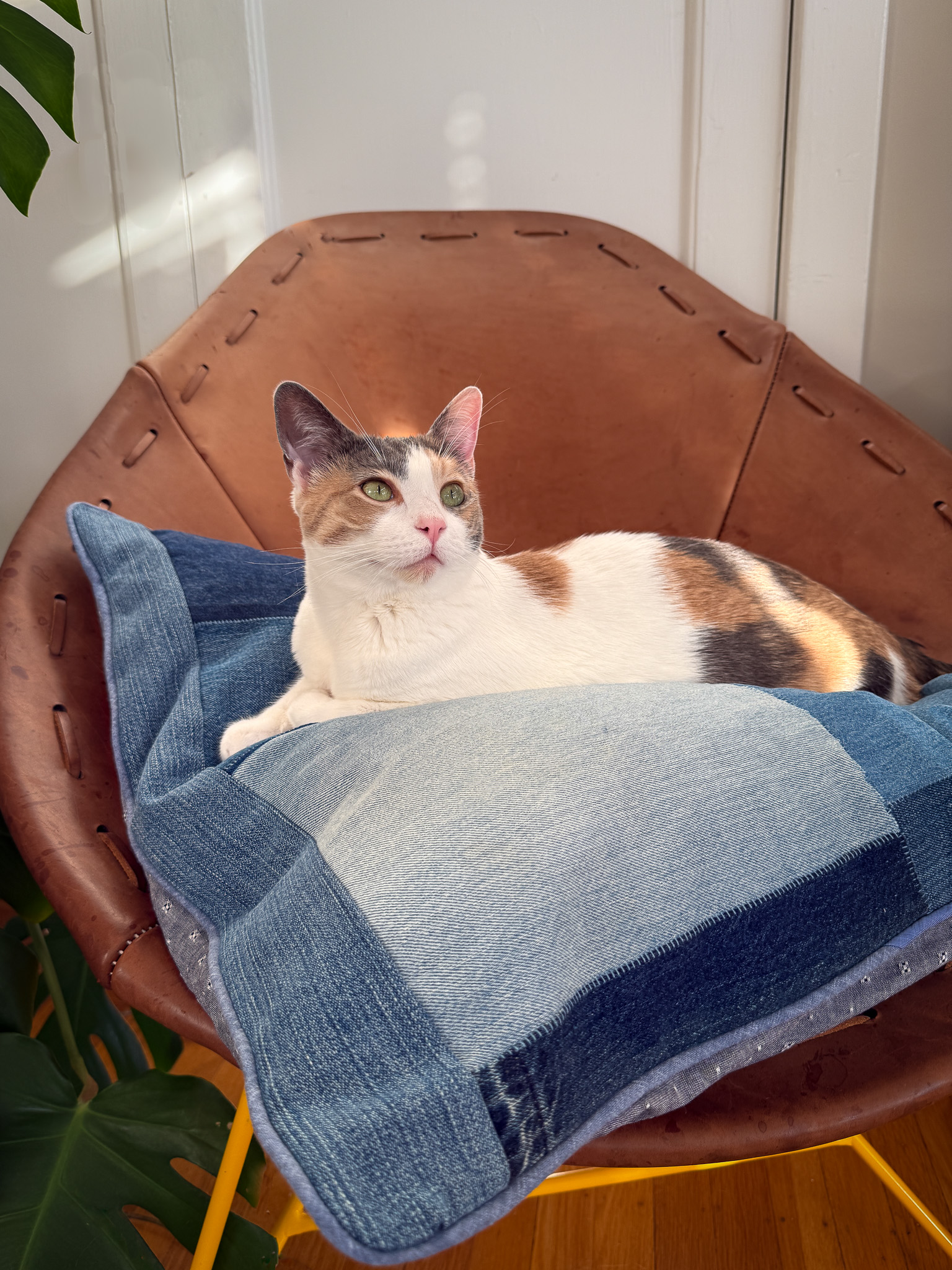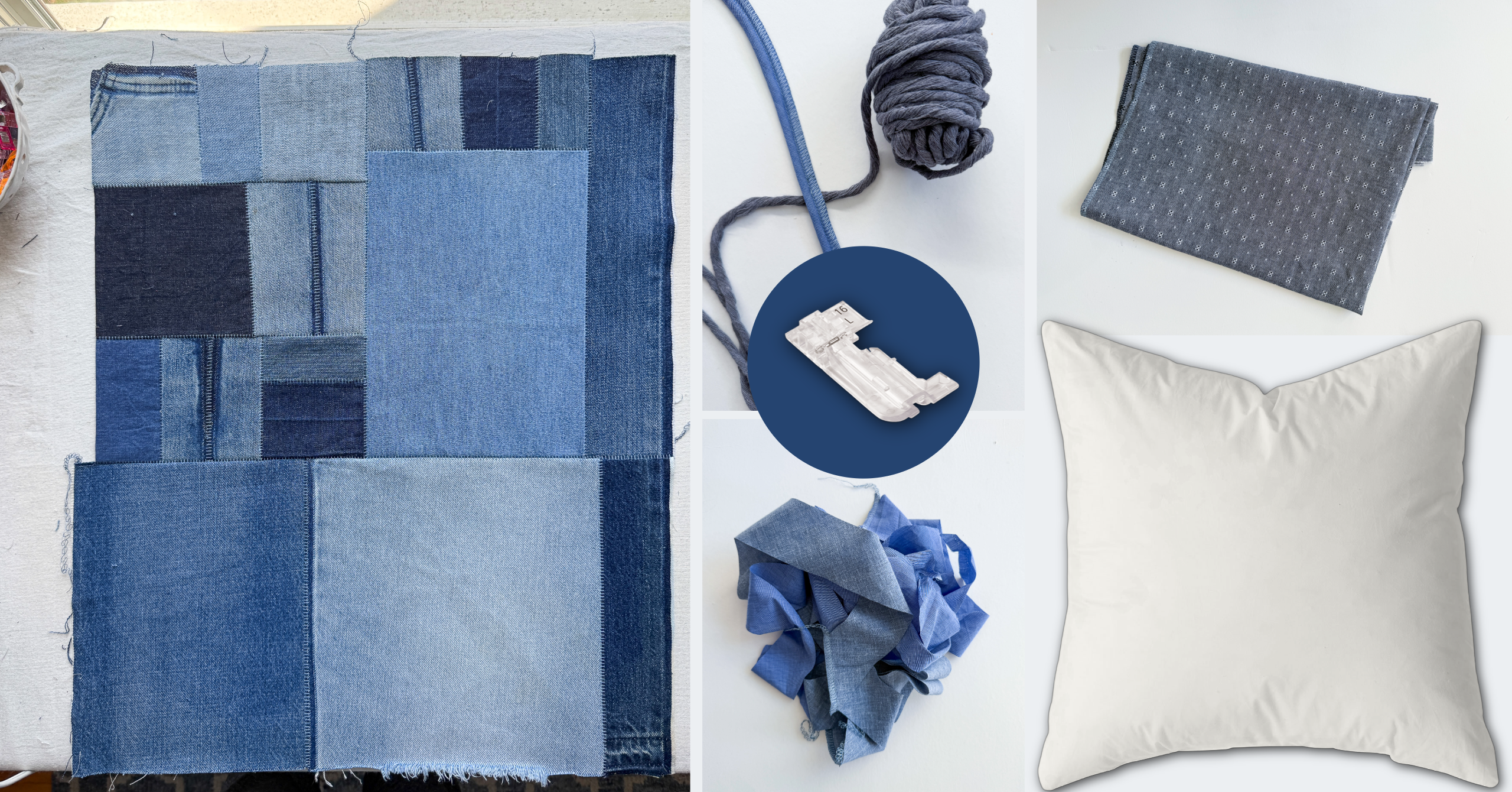 - Pillow front: patchwork, denim scraps, or any fabric you’d like