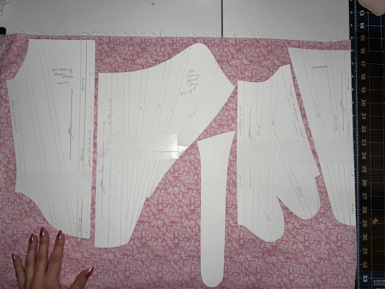 Grab your lining layer and add it to the stack of your fabrics, as it is now time to sew in your boning channels. The boning will eventually live in the in-between of the lining fabric and the internal structure fabric.