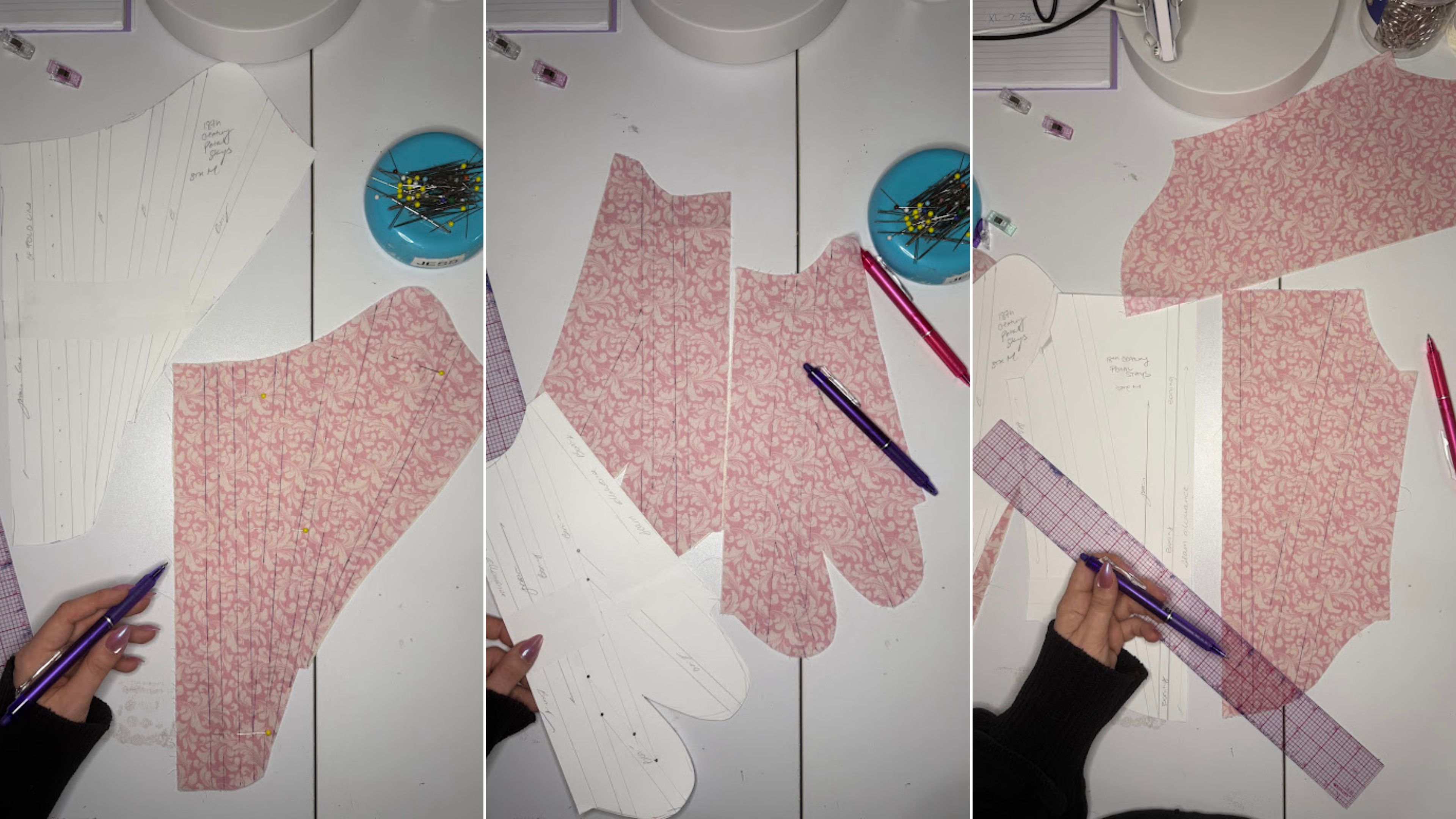 This honestly takes a lot of time, and that is okay. These need to be precise, and I like to use a heat-erasable fabric pen to make sure I can see everything easily. These lines will act as guidelines for your decorative motifs, and then you will stitch on top of them when you sew your boning channels, so this is a very important part of the whole process!