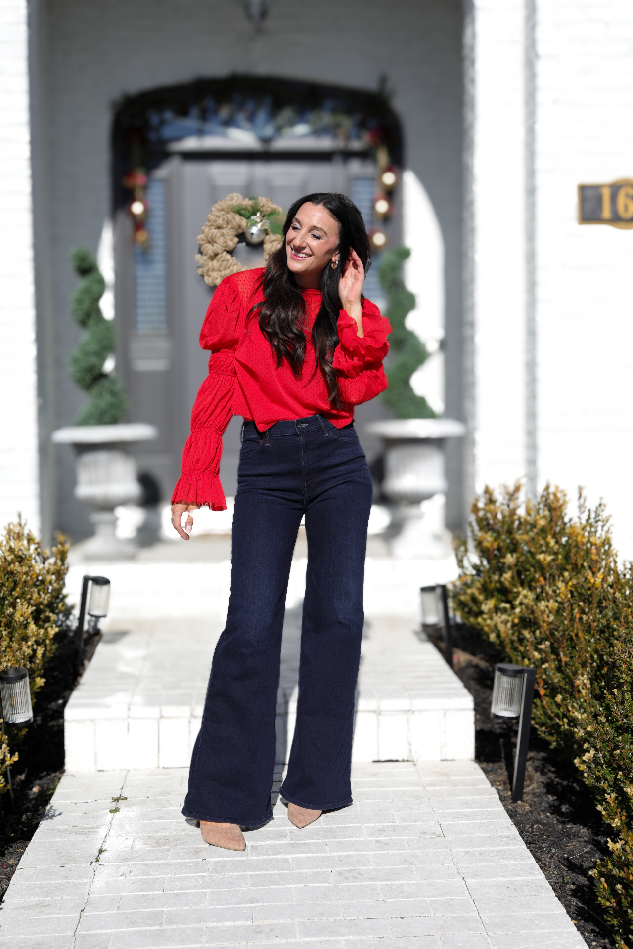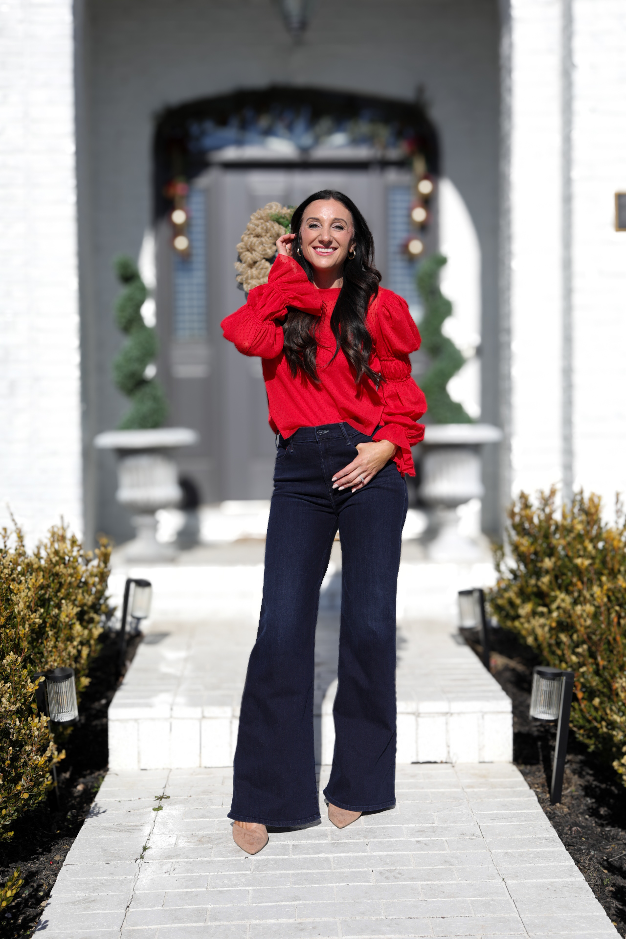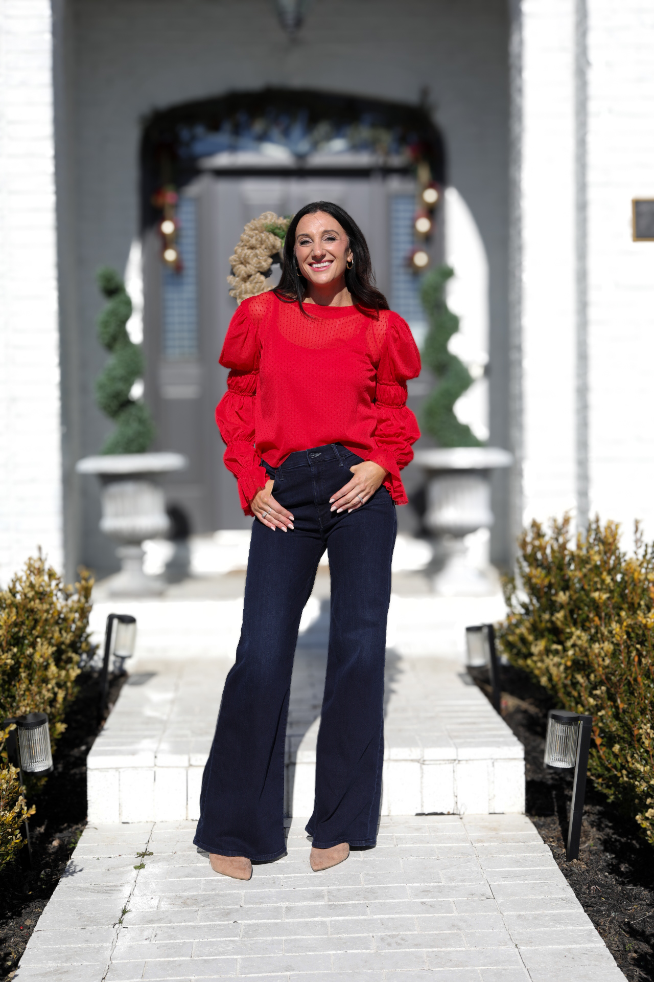 For the fabric, I am using a thin sheer mesh fabric featuring small polka dots. My plan is to create a sheer top to wear over a red tank for Valentine’s Day!