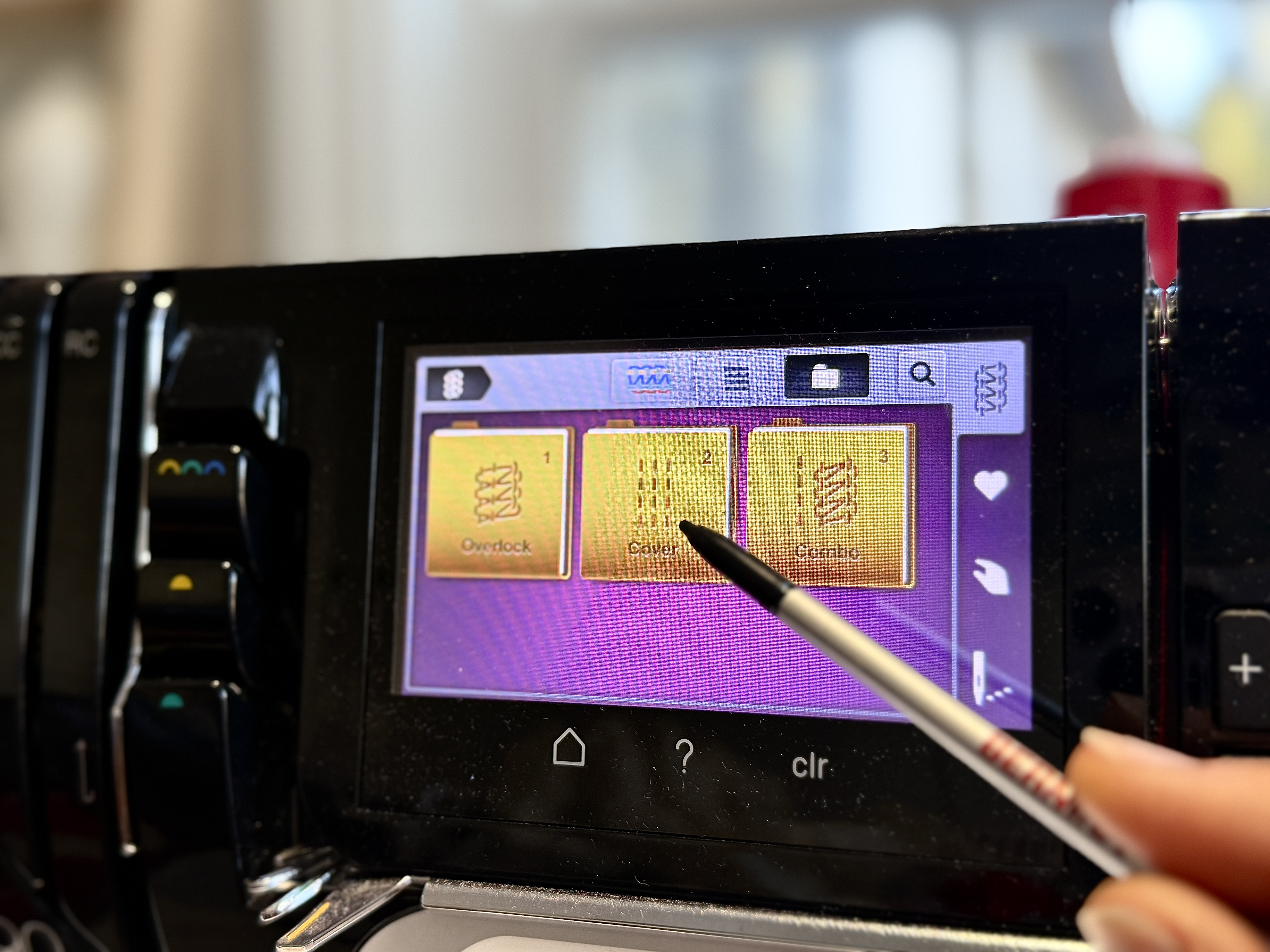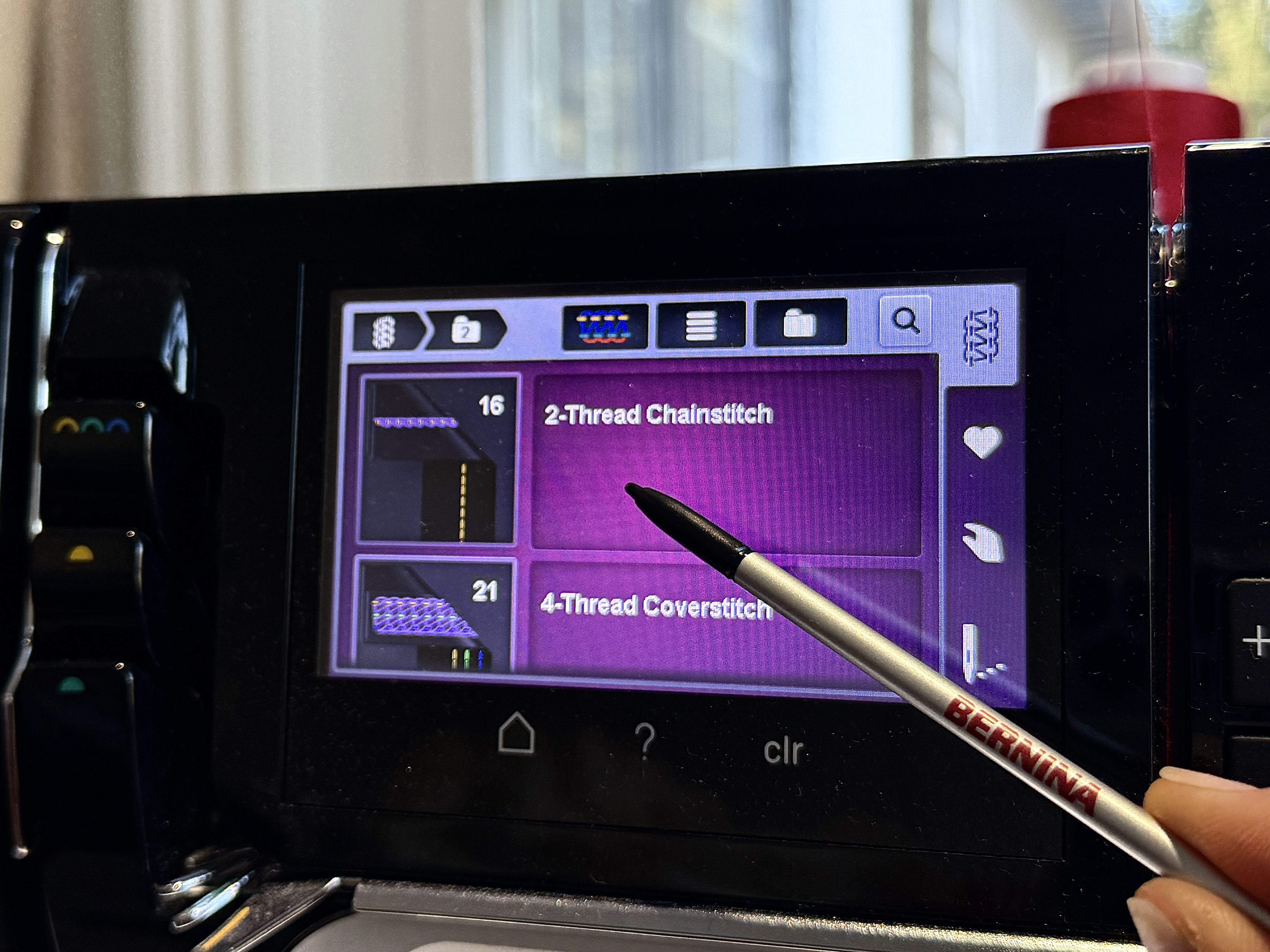 We will begin by setting the L 890 up for a chain stitch, stitch number 16. The chainstitch is best suited when shirring in the middle of a fabric piece. This stitch can be found within the Coverstitch folder.