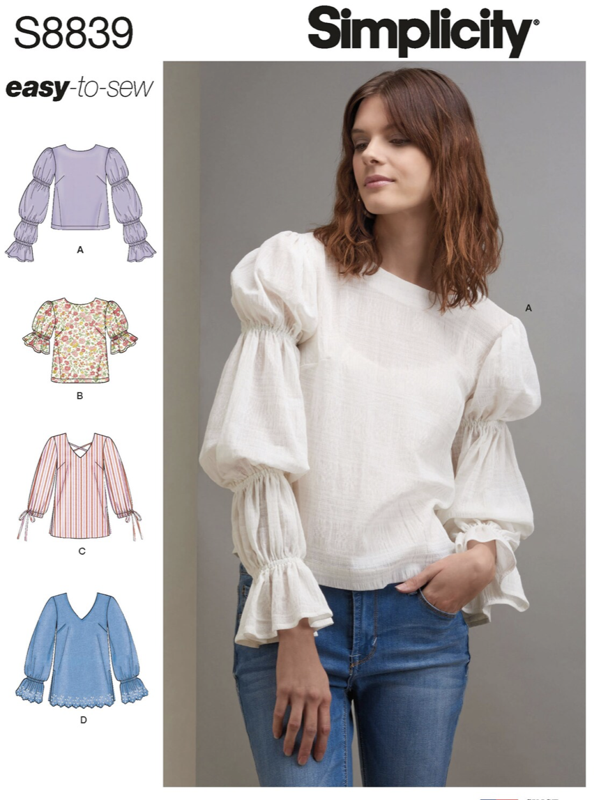 In today’s blog post, I will walk you through how you can do this technique at home, too! I will be using Simplicity’s Easy-to-Sew pattern S8839 to demonstrate this method. The voluminous puff sleeves are the perfect pattern piece for shirring.