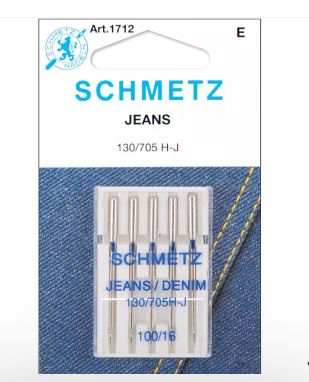Some experts consistently use a 100/16 size needle (Me!), and I’ve heard some experts would first recommend the sharpest needle (Microtex) available to pierce layers of denim, depending on the fabric weight and construction. Test, test, test needles on your project samples and determine what will work for you and the desired results.