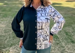 Home » One Shirt Pattern Three Ways, Part One: Colorblocking » BERNINA-Colorblock-Shirt-VERNON-Sharon-Sews-Crop