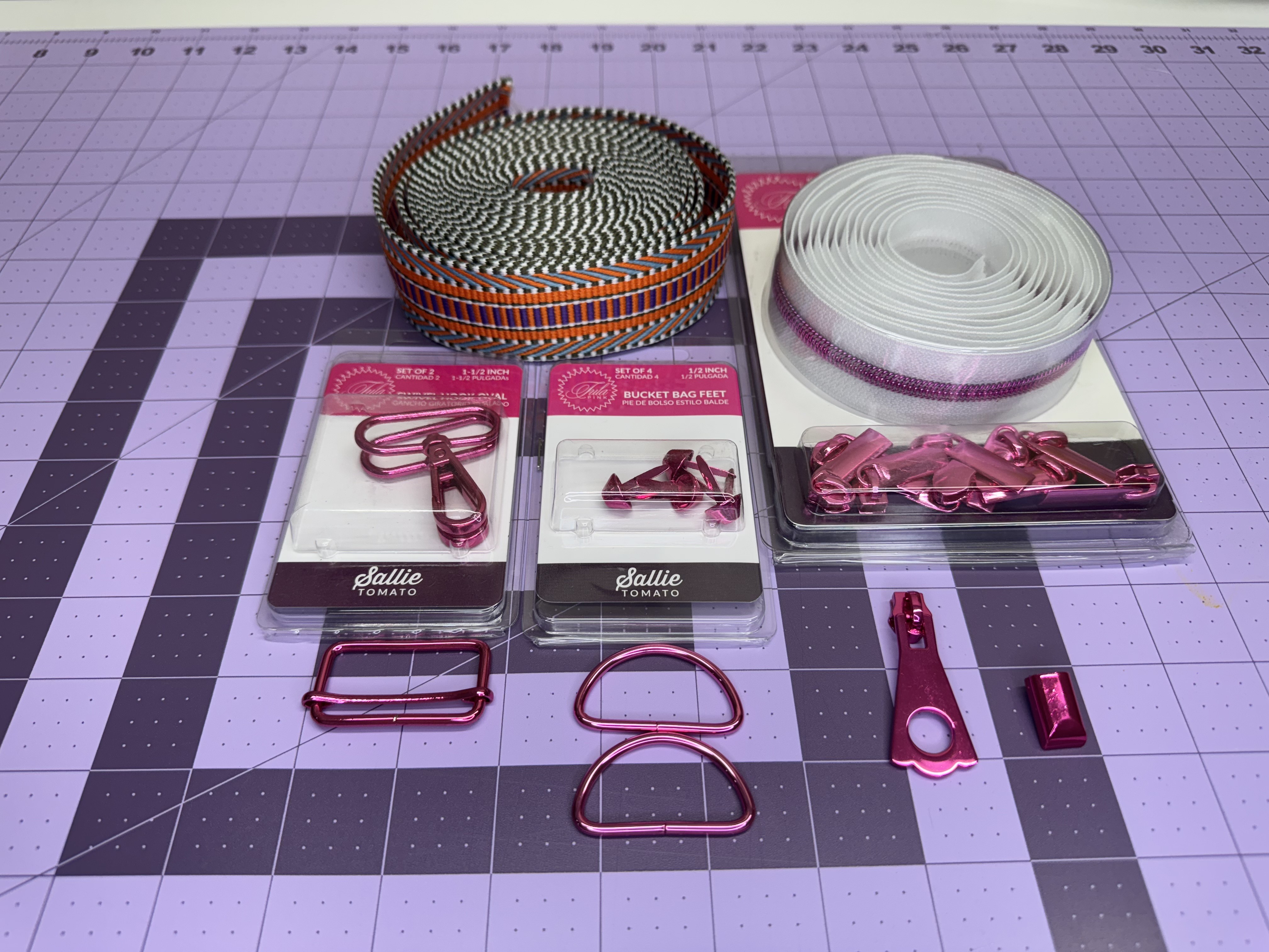 Nota: Estamos usando herrajes de la línea Tula Pink de Sallie Tomato.