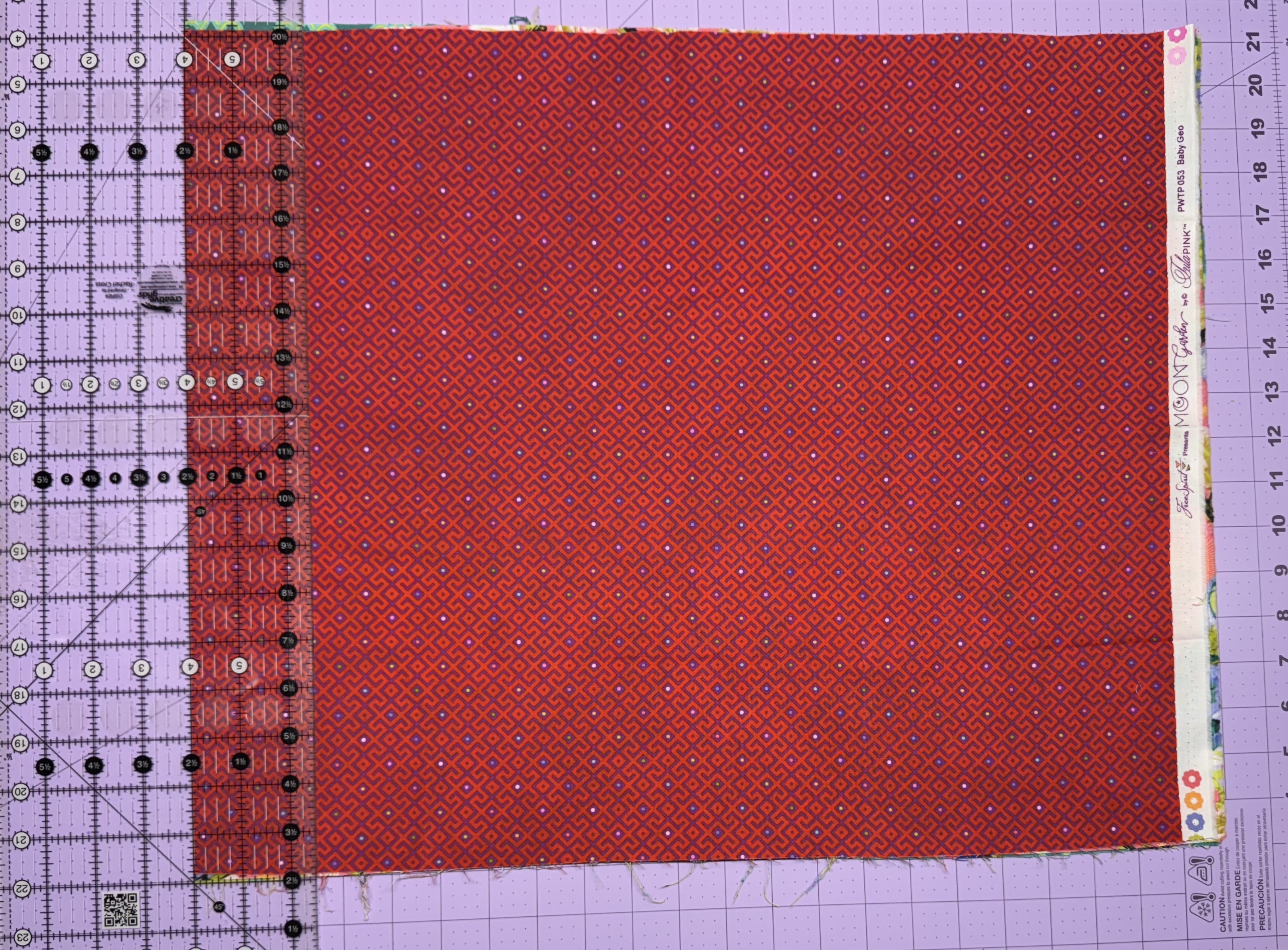 Cortar (2) rectángulos de 18” de ancho x 20” de largo de la tela del forro. Estos formarán los paneles interiores principales del bolso.