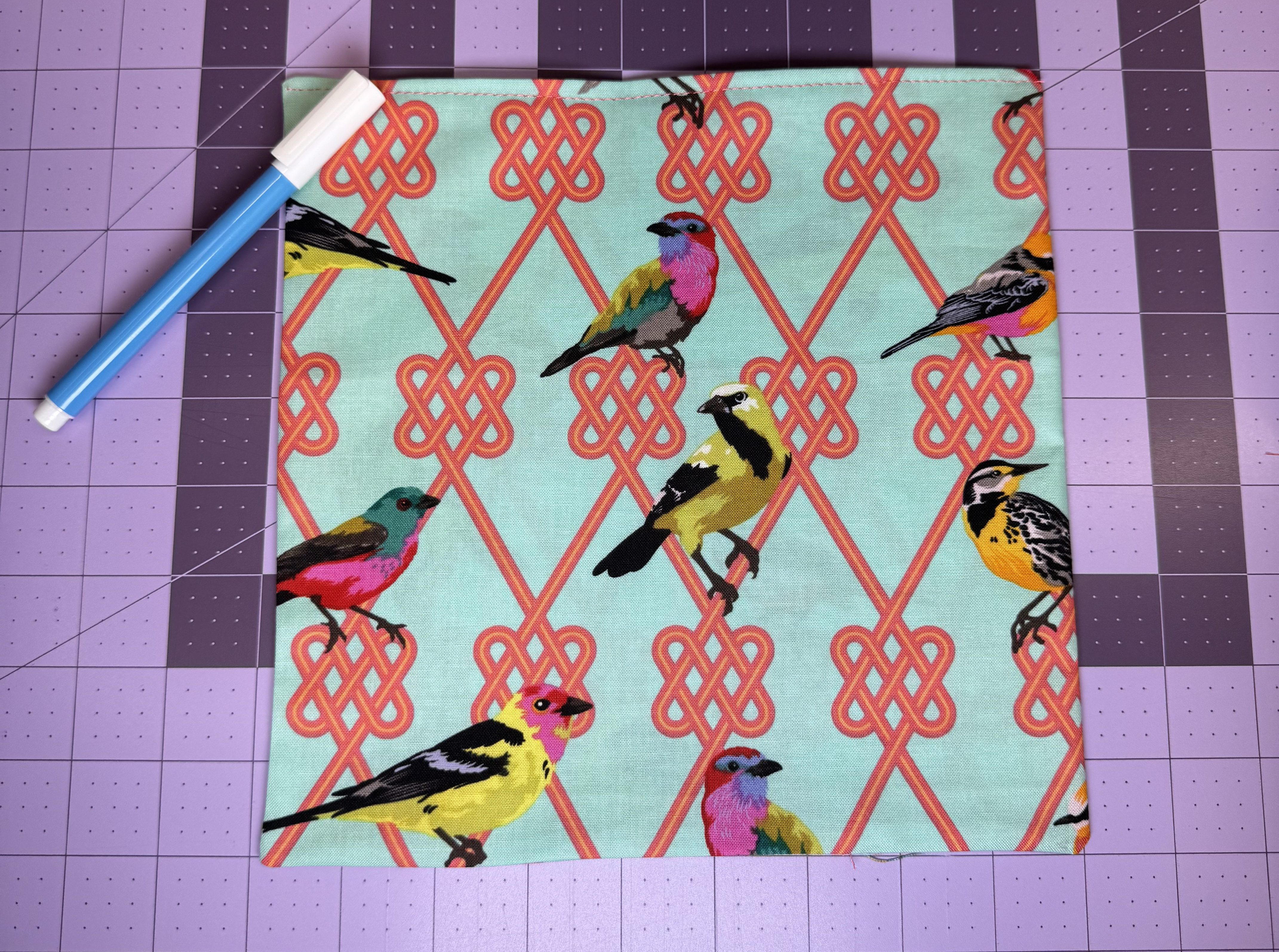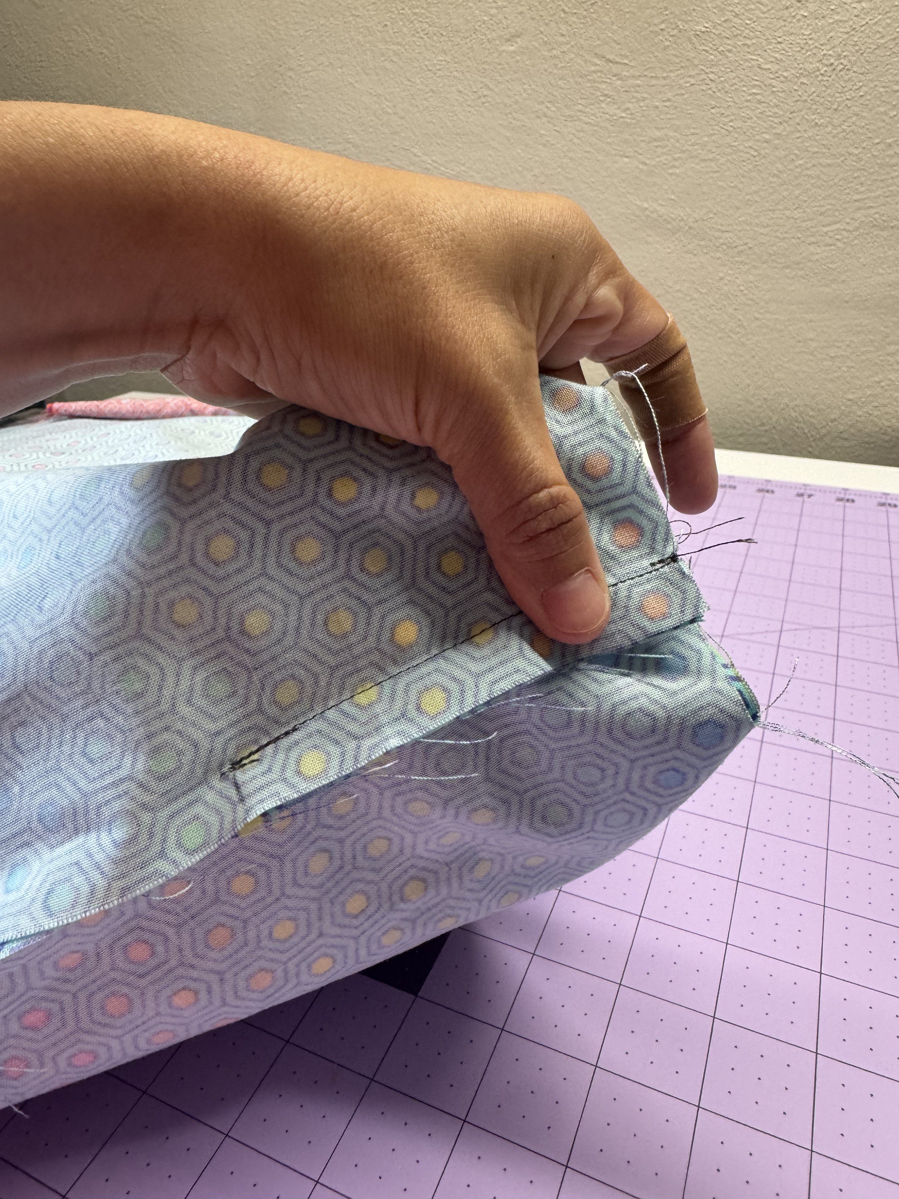 Coser alrededor de los cuatro lados con un margen de costura de ¼”, dejando sin coser la abertura marcada.