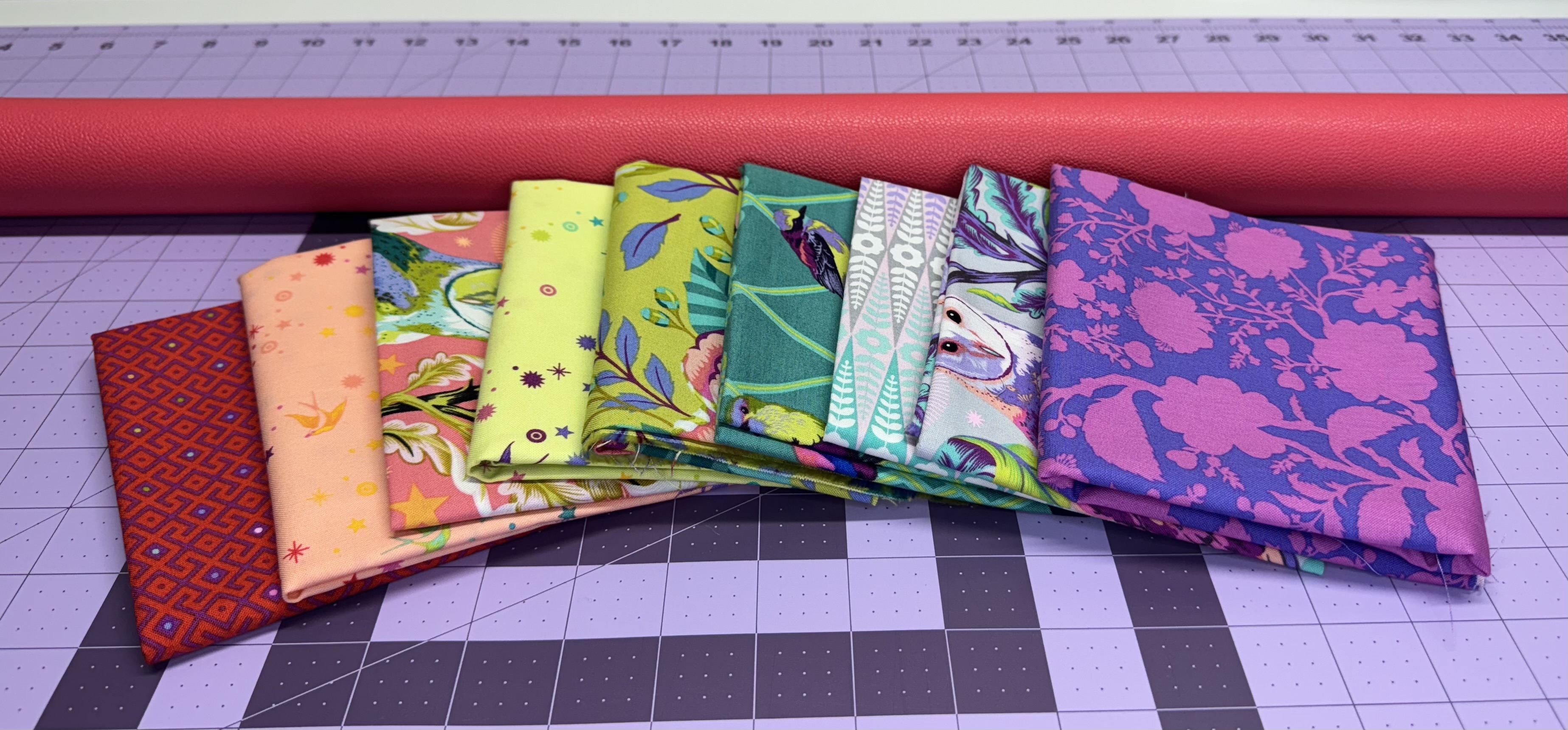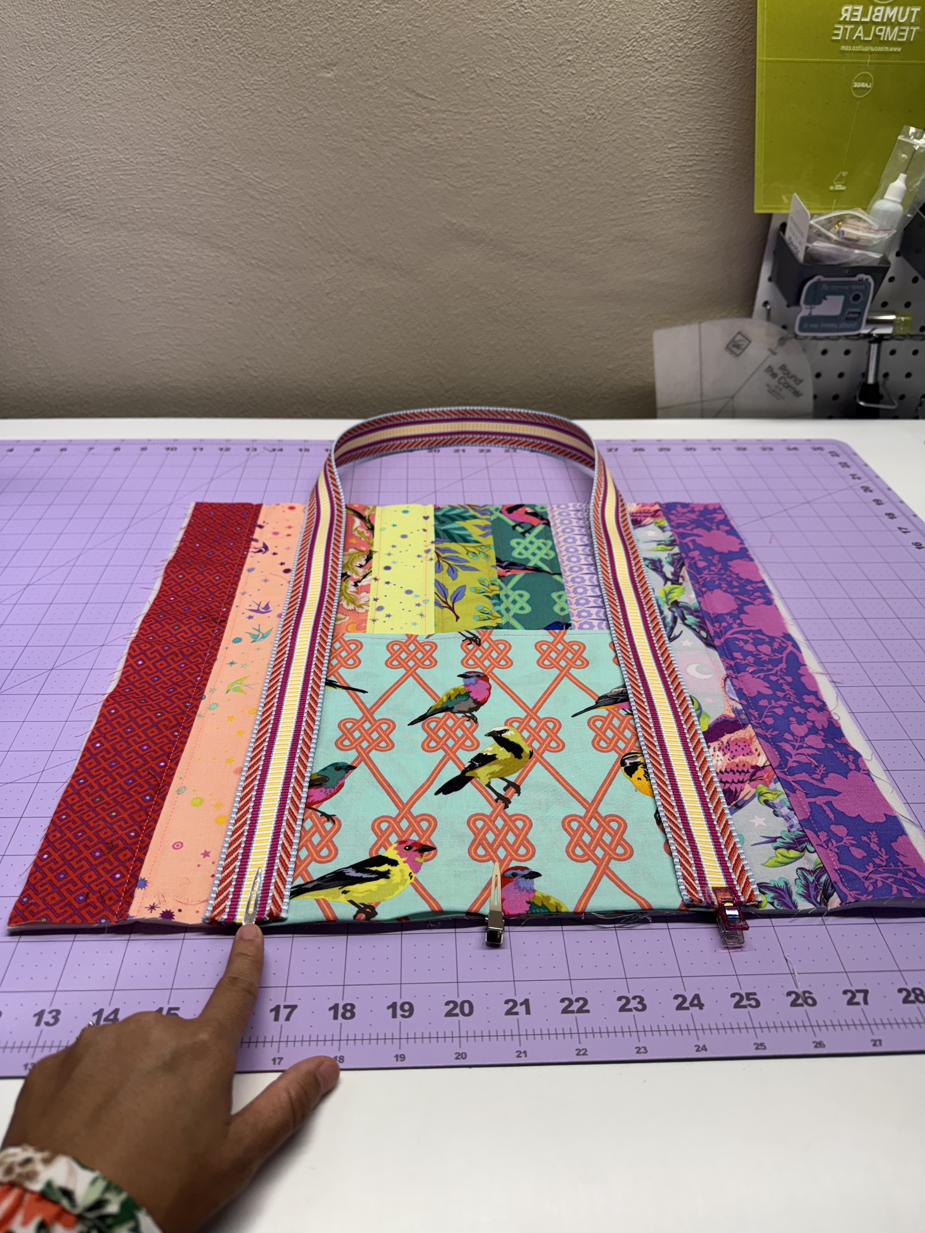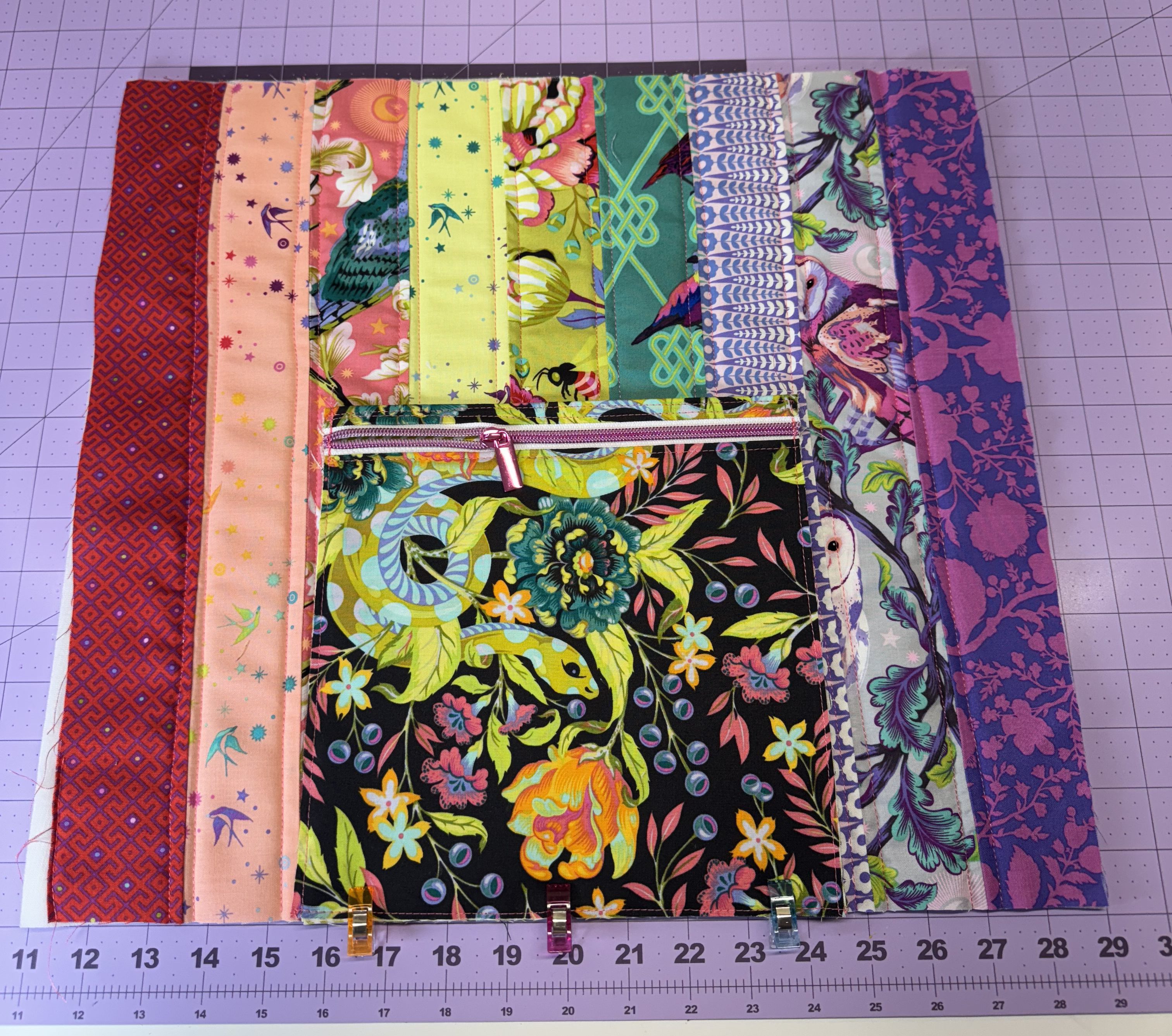 - (Si usas tiras de tela, añade 2 FQs adicionales para los bolsillos exteriores delanteros y traseros.)