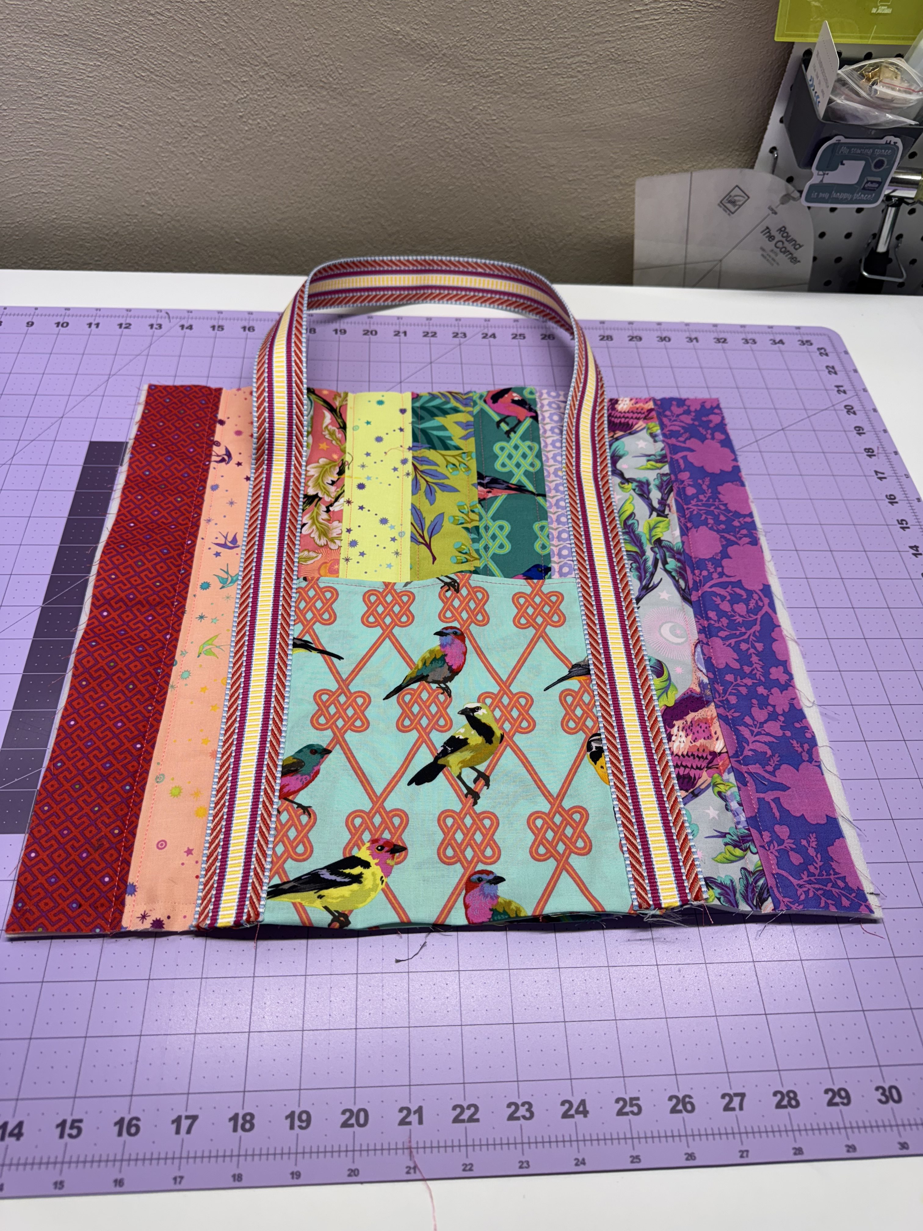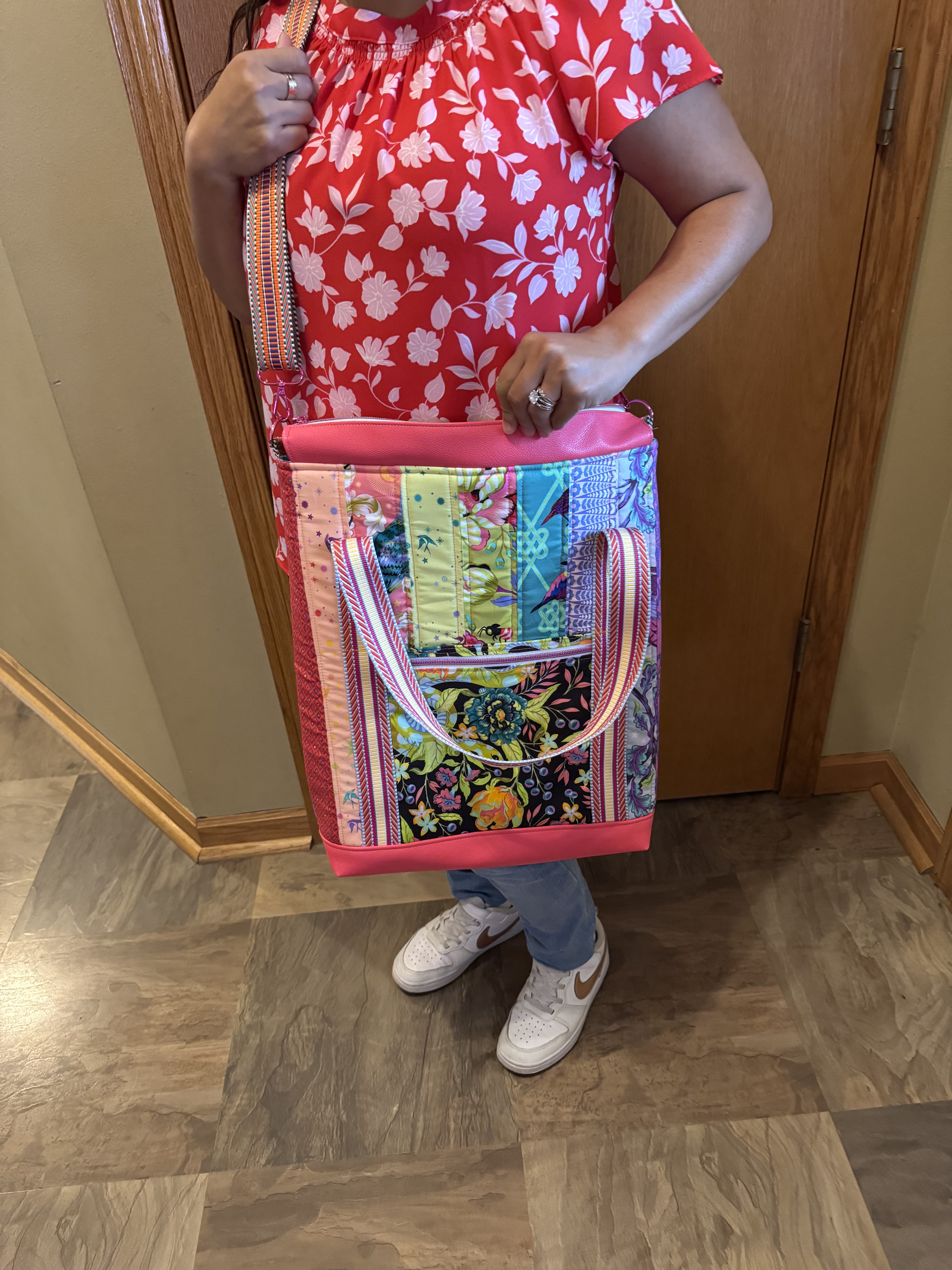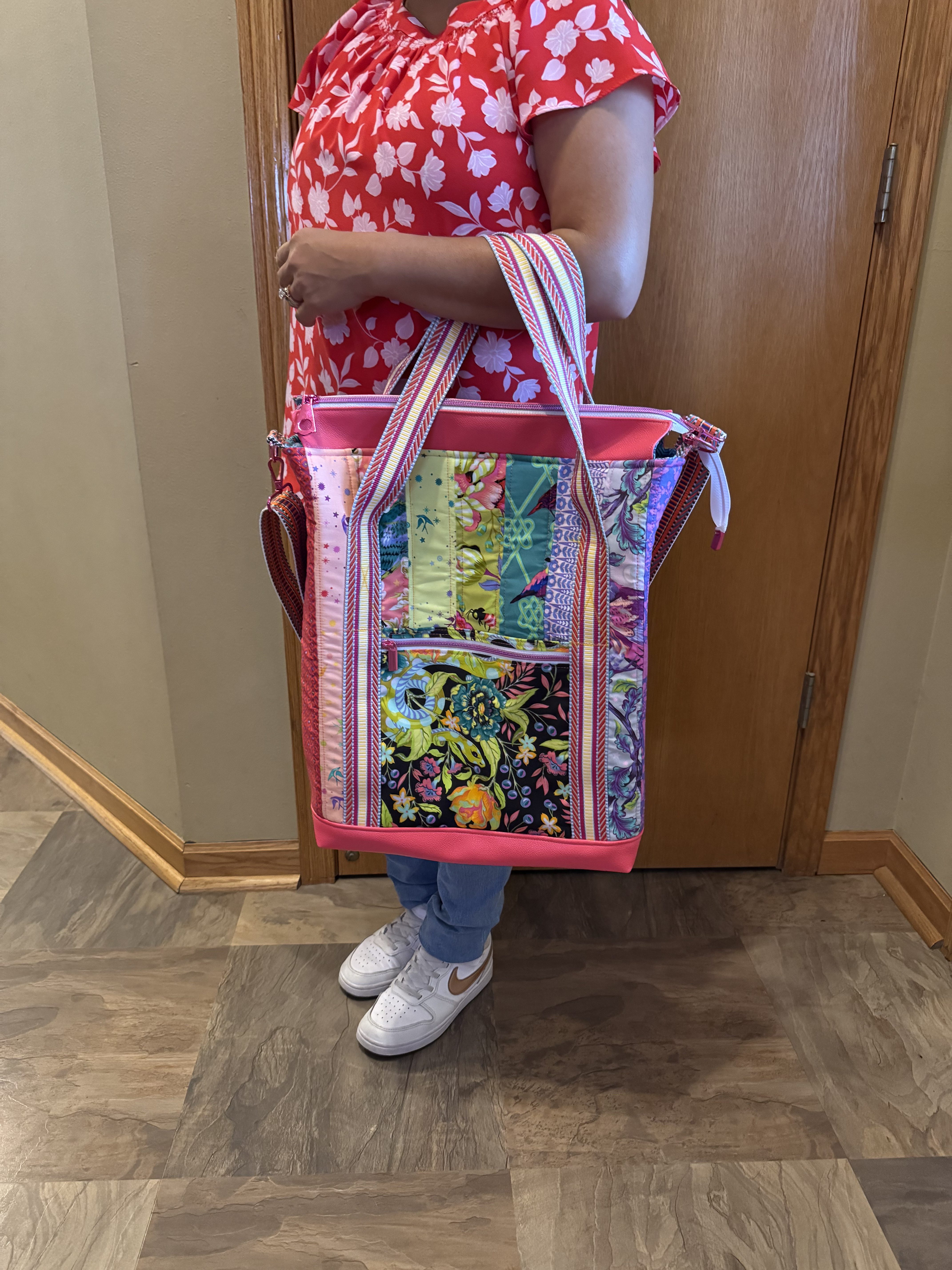- (Si usas tiras de tela, añade 2 FQs adicionales para los bolsillos exteriores delanteros y traseros.)