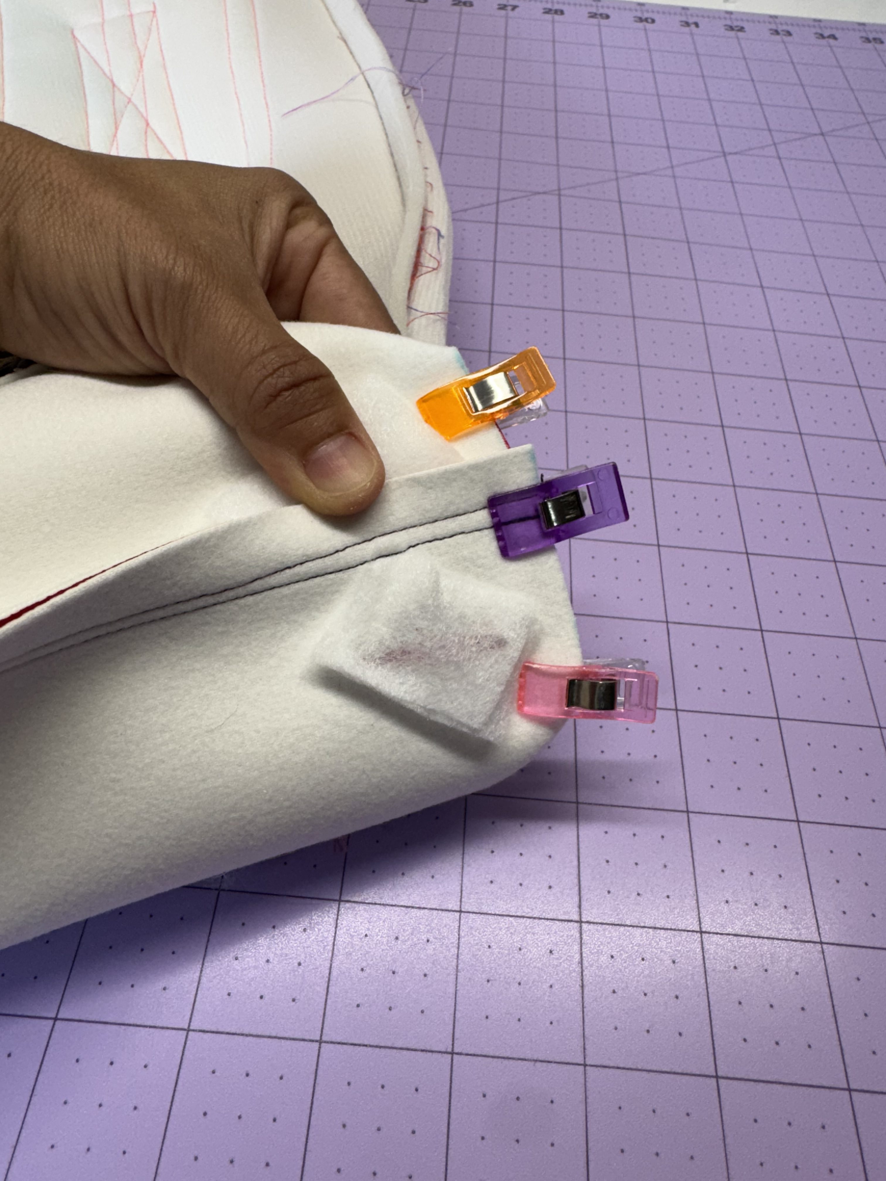 Sujetar con pinzas y coser con un margen de costura de ½”.
