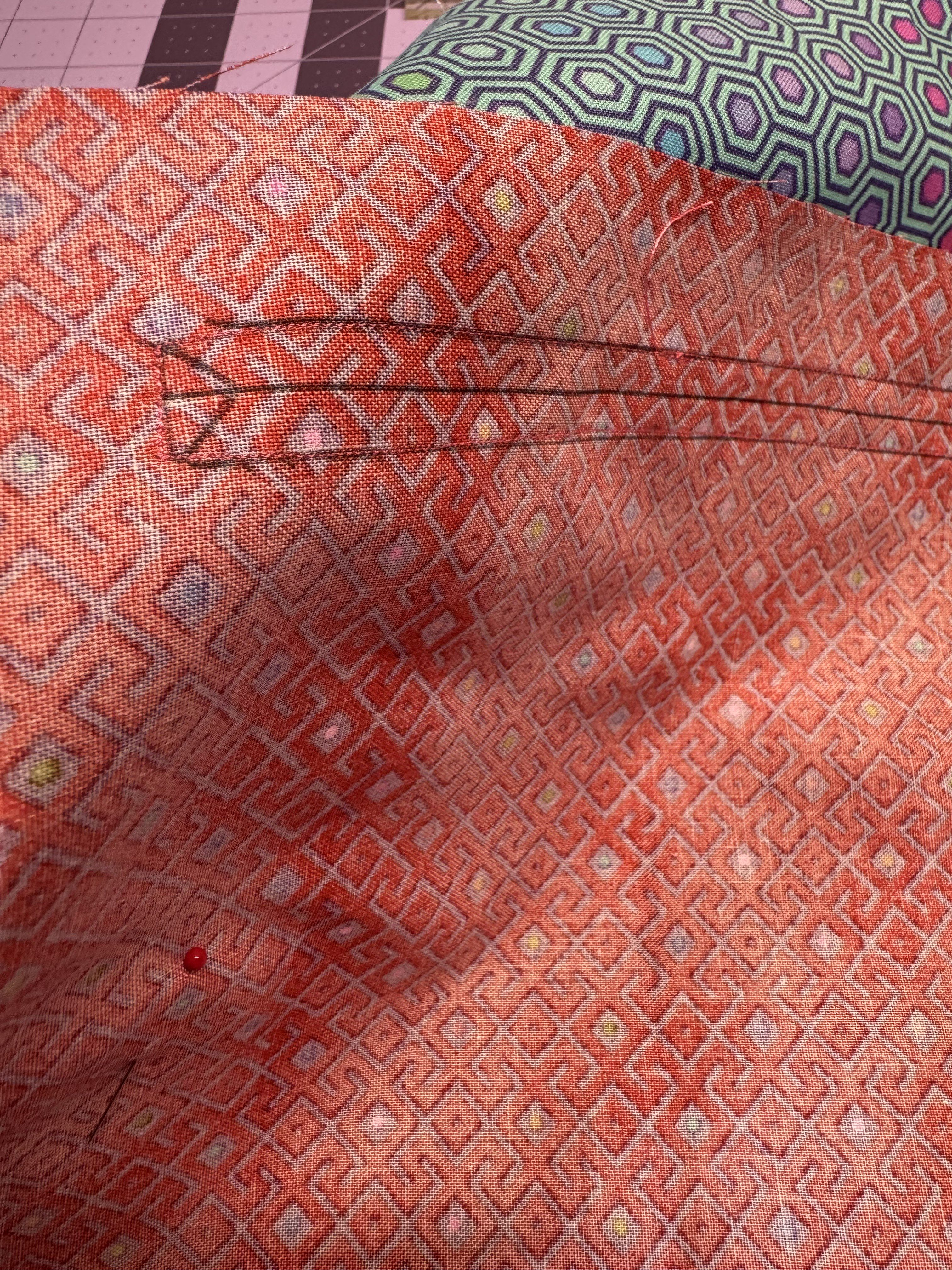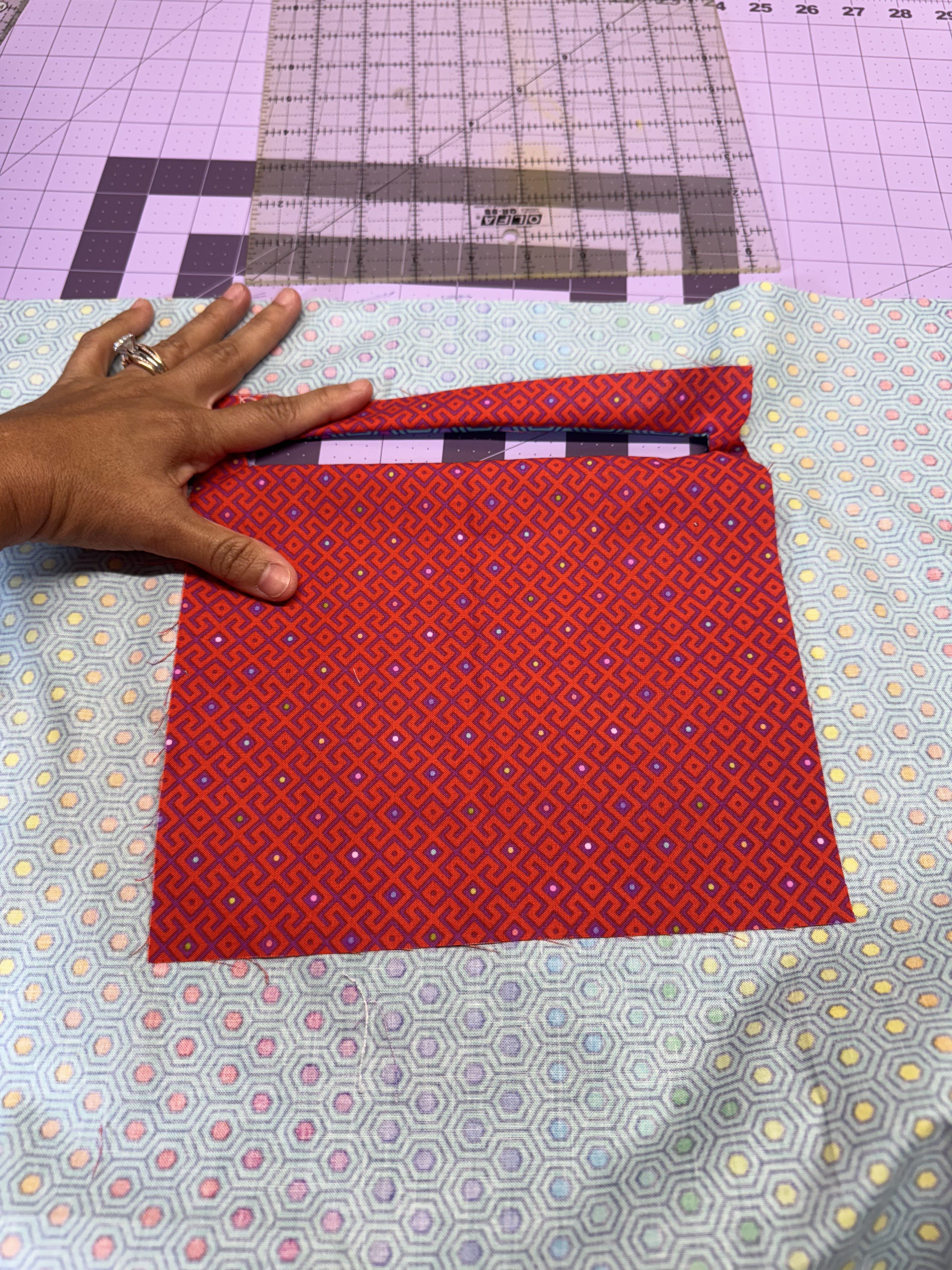 Coser alrededor de los cuatro lados del bolsillo con un margen de costura de ⅜”.