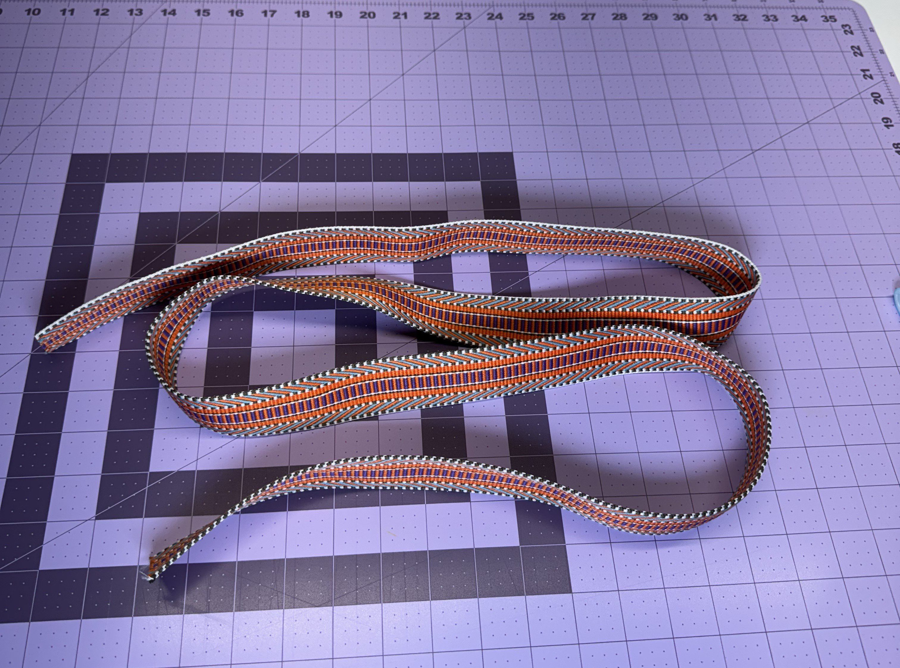 - 4 ⅝ yardas de cinta de algodón (webbing) de 1 ½” – asas y correa cruzada