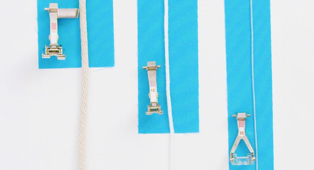 Piping Foot #L16/C16 L (5 mm) uses larger cording up to 5 mm in diameter.