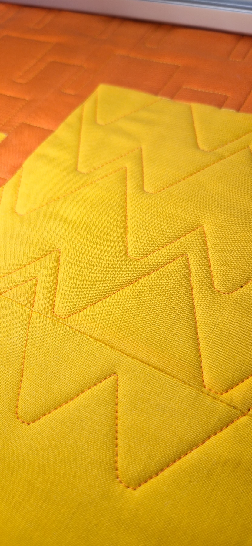 After connecting the elements on that bottom row, I connected the second row. A little line formed between those rows, which will be quilted on the edge of the triangle.