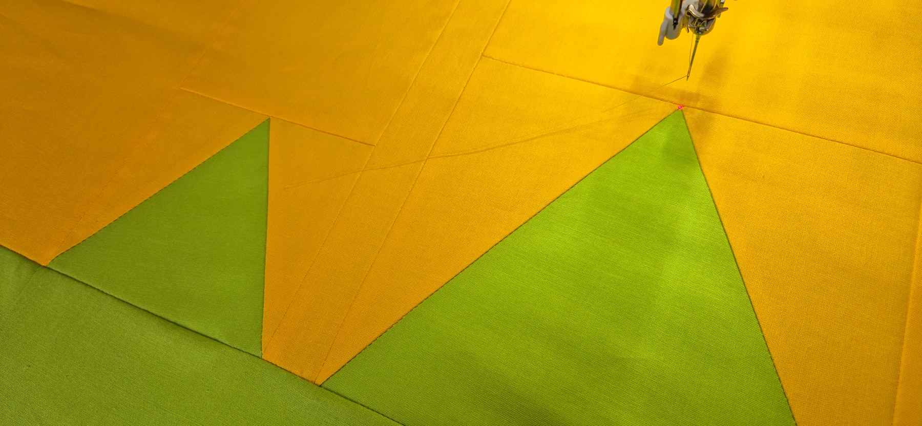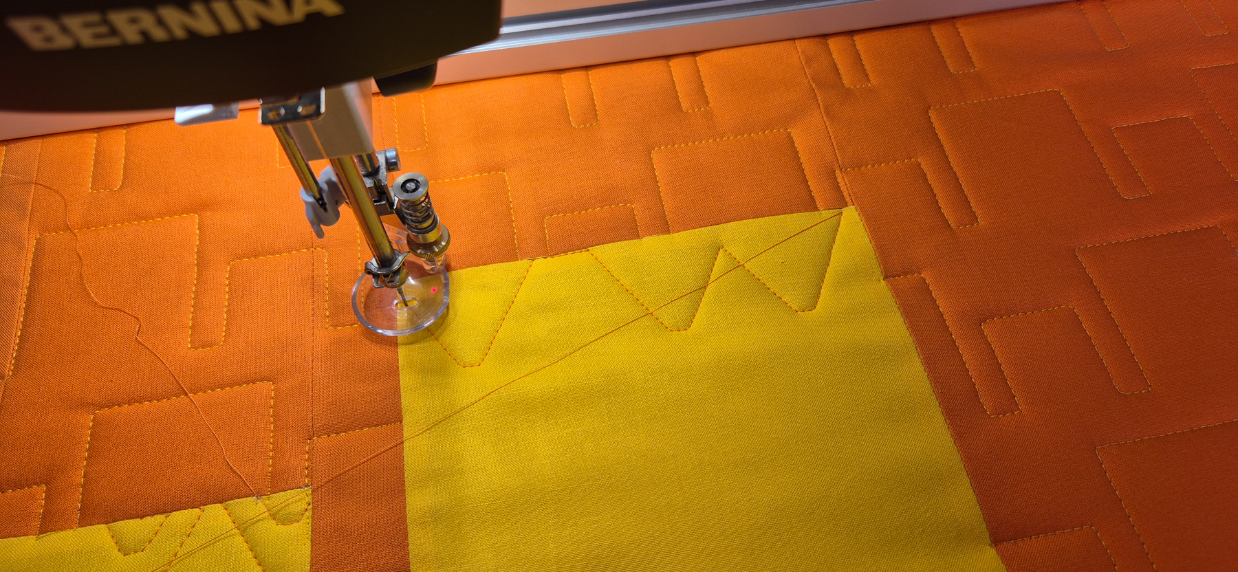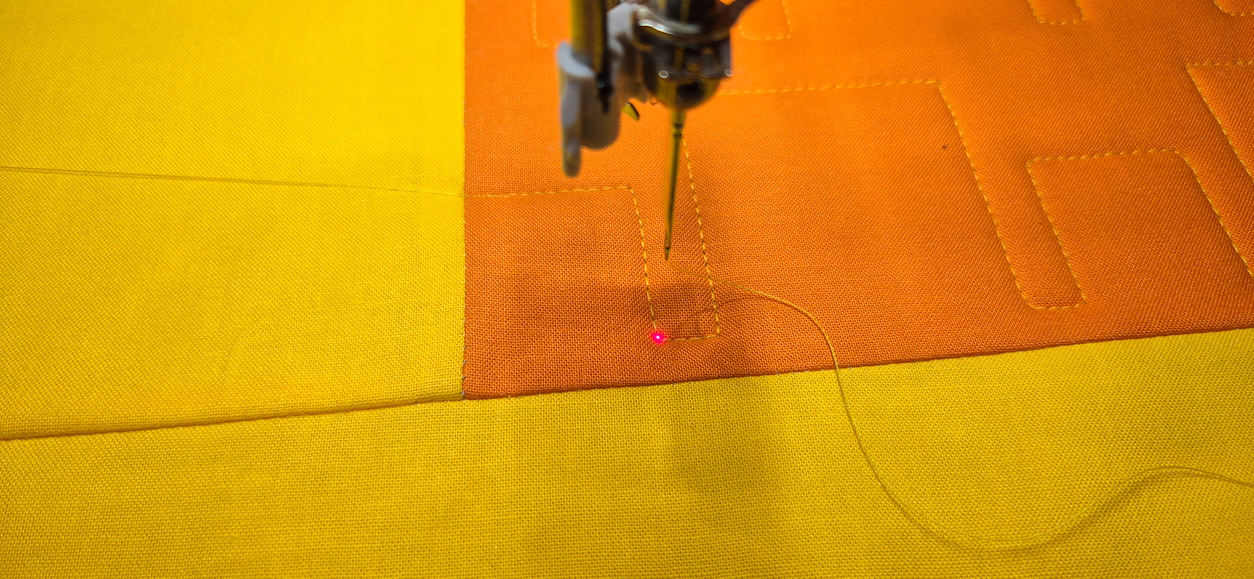Move your quilt on the rollers so that your sew head can reach all the yellow fabric. Place the needle on a point on the design that you can recognize on the screen.
