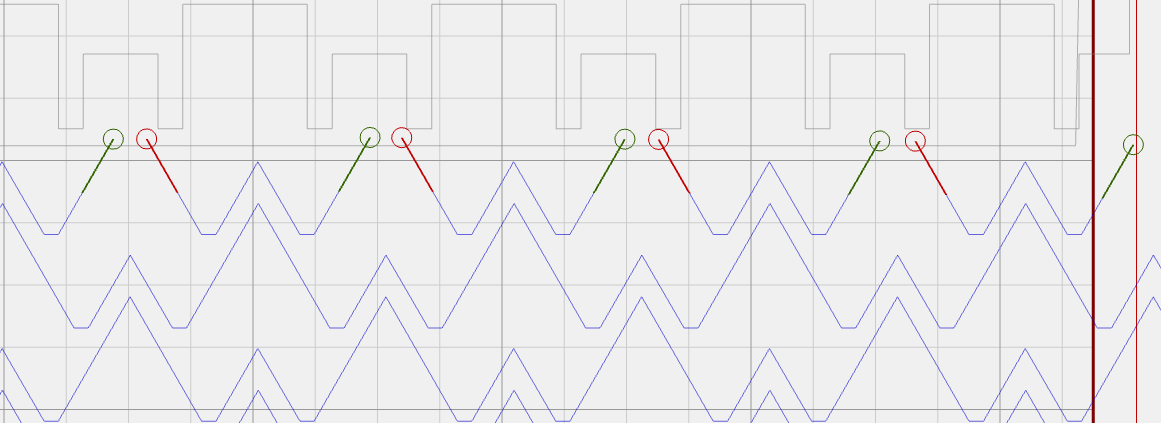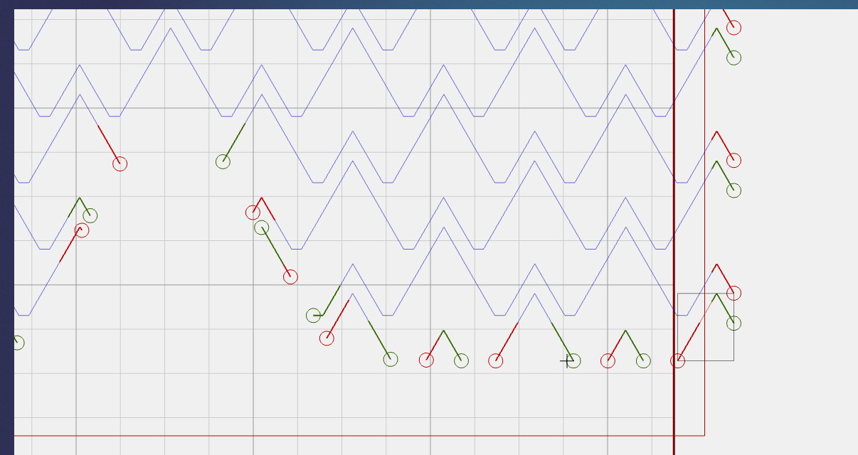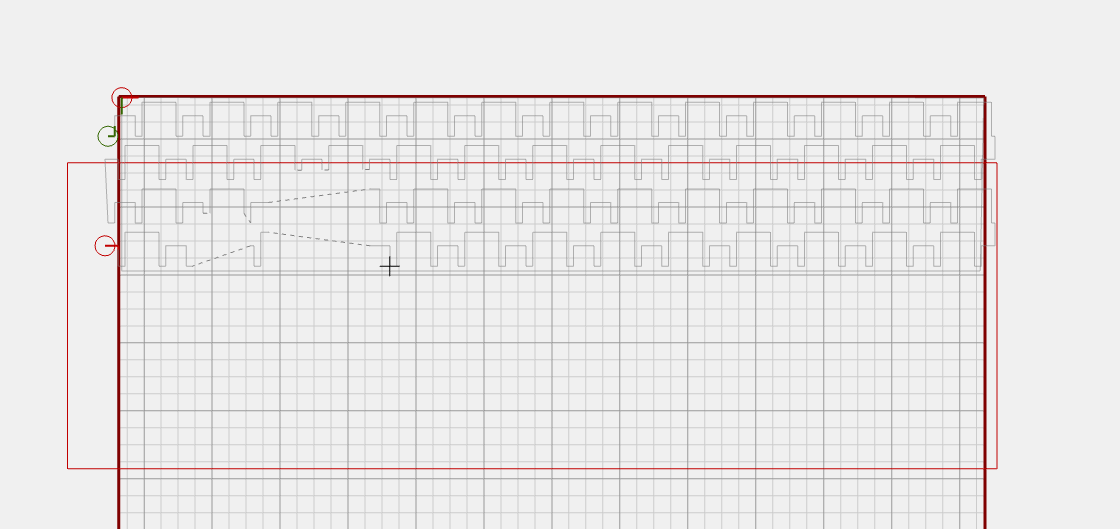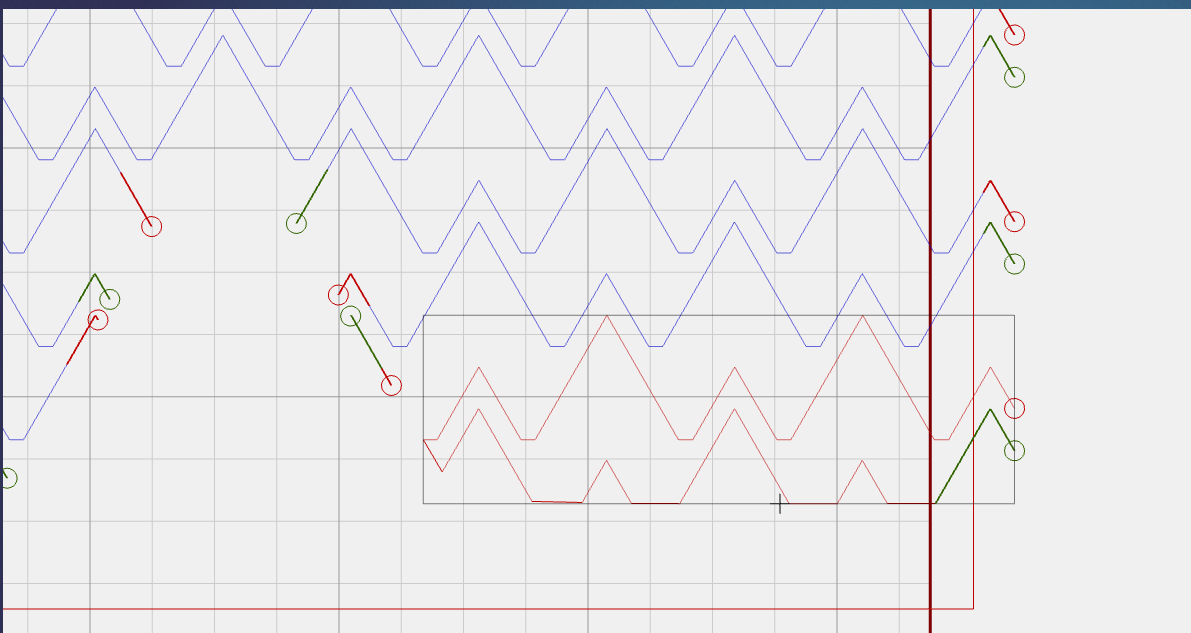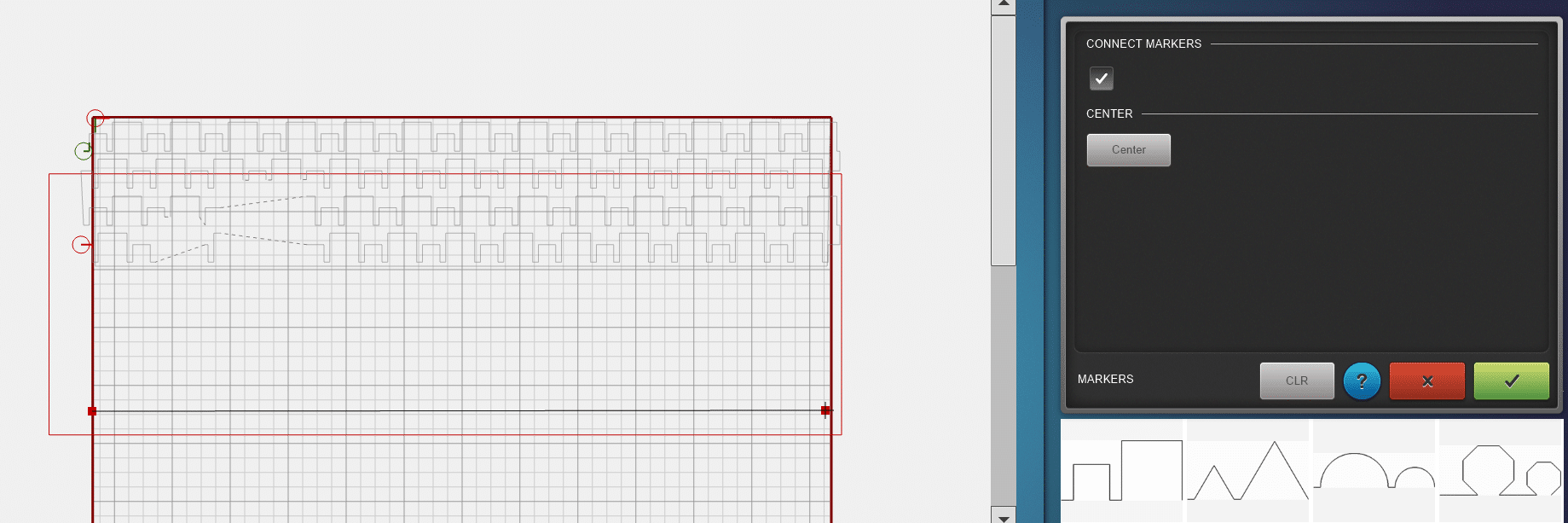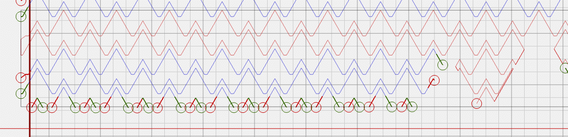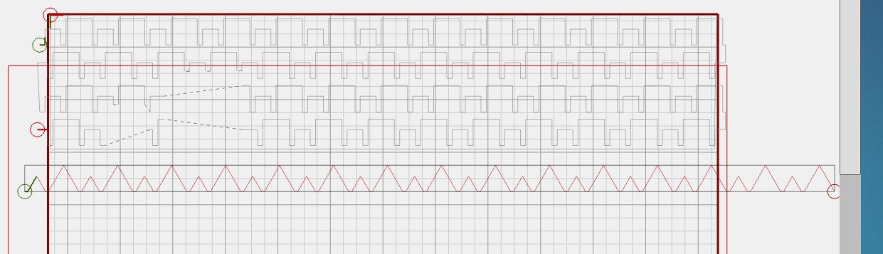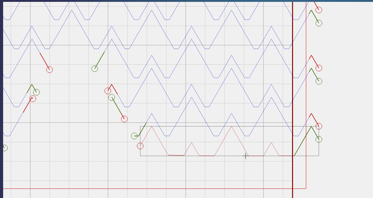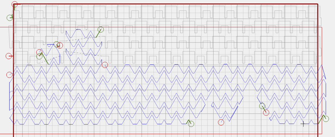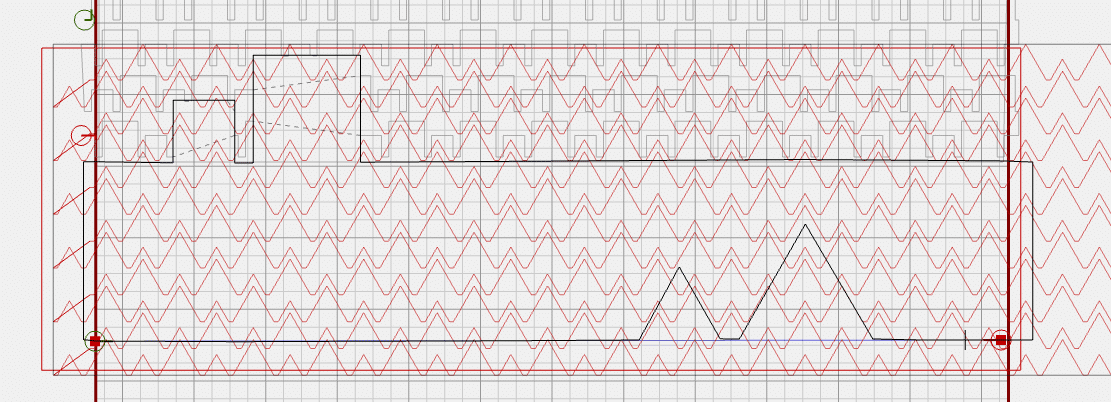 Now we will repeat the design and fill the whole space with it. Use the E2E+ function from the Tool Center to repeat the triangles until it is a bit wider than the row.