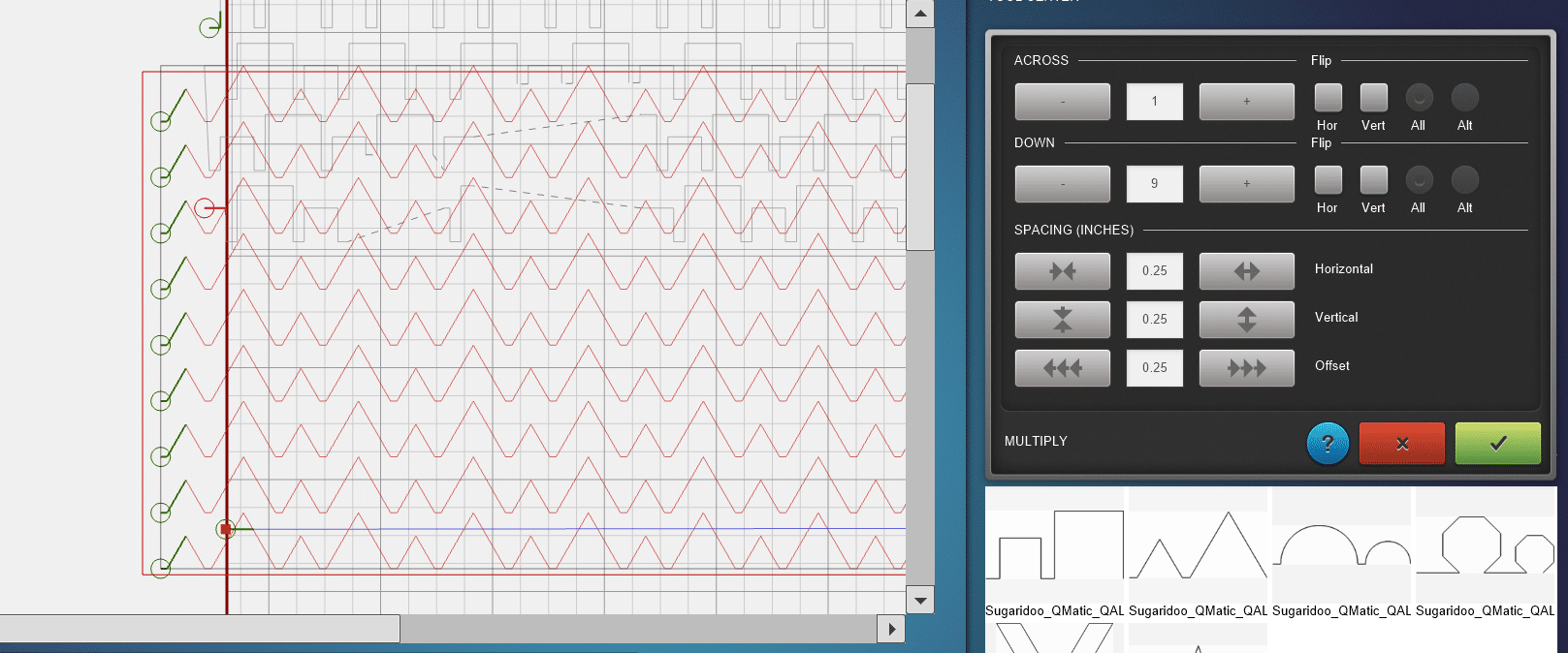 I noticed that the design did not fill the complete row. This is why we use the marked line. So make sure to increase the number at DOWN so the whole row is filled.