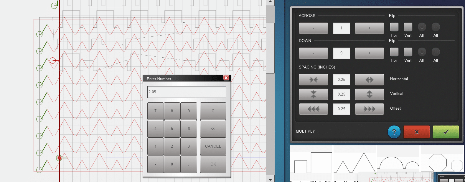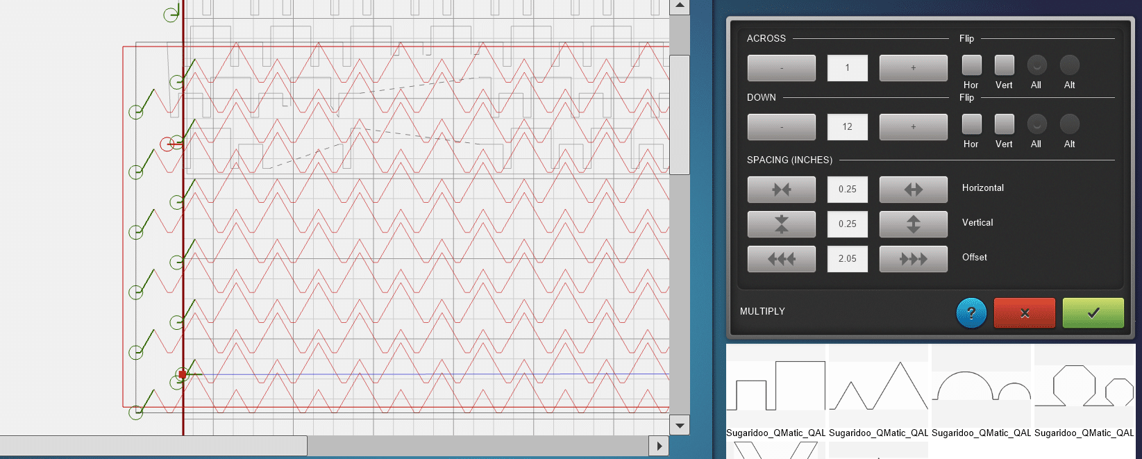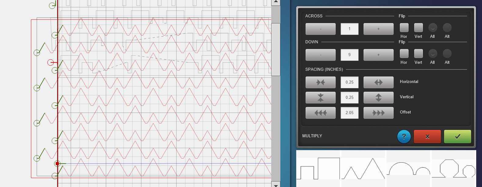 Now set the Spacing Offset to 2.05 inch. This is half of the width of the design. This will shift every other row.