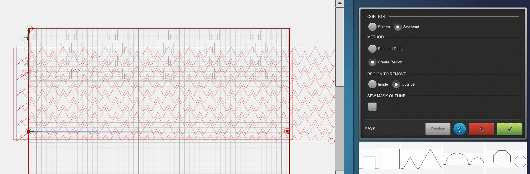 You could hit start at this point. But I prefer to first clean up the design we created after using the mask function. There are a lot of tiny points that don’t really need to be quilted.