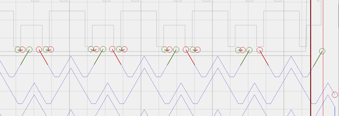 Note the red and green circles. Green is the start point of a design, red is the end point. You only want to connect parts that have a logical path from the red to the green circle.