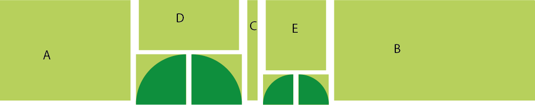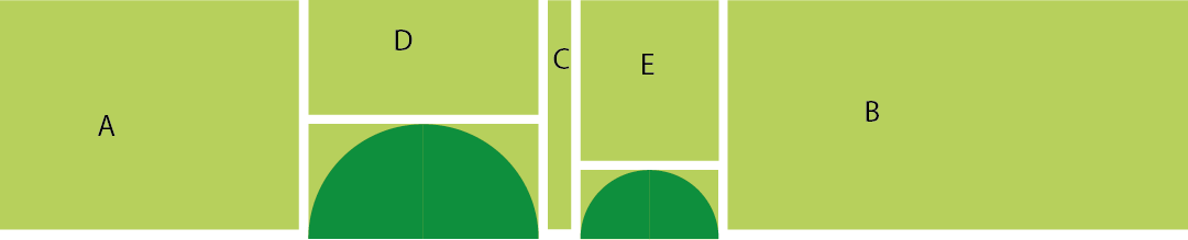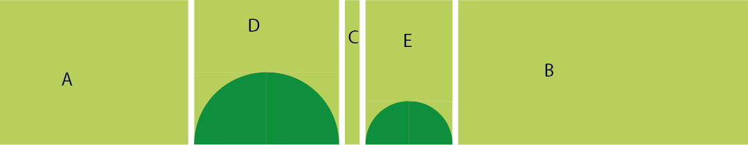 Sew D to the big half circle and E to the small half circle.