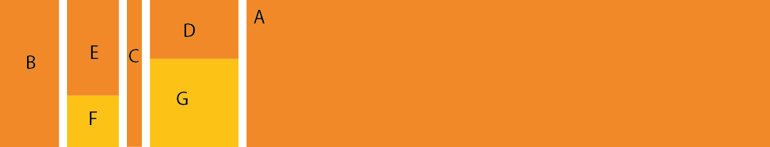 First sew piece E to F and piece D to G