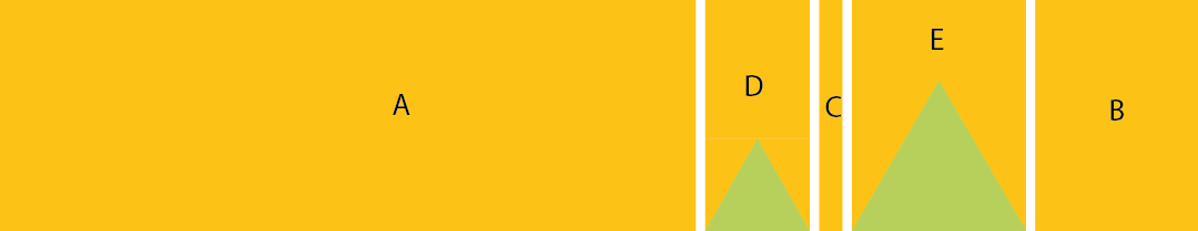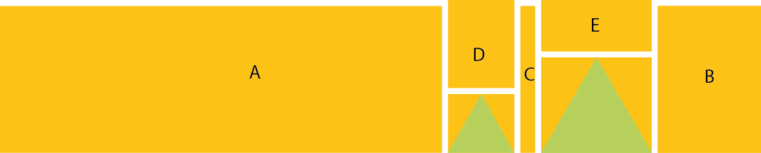 First sew D to the small triangle and E to the big triangle