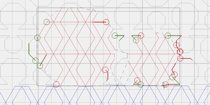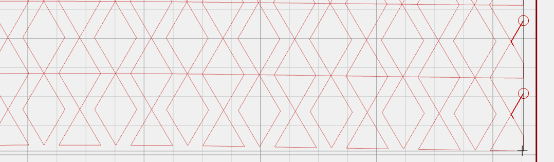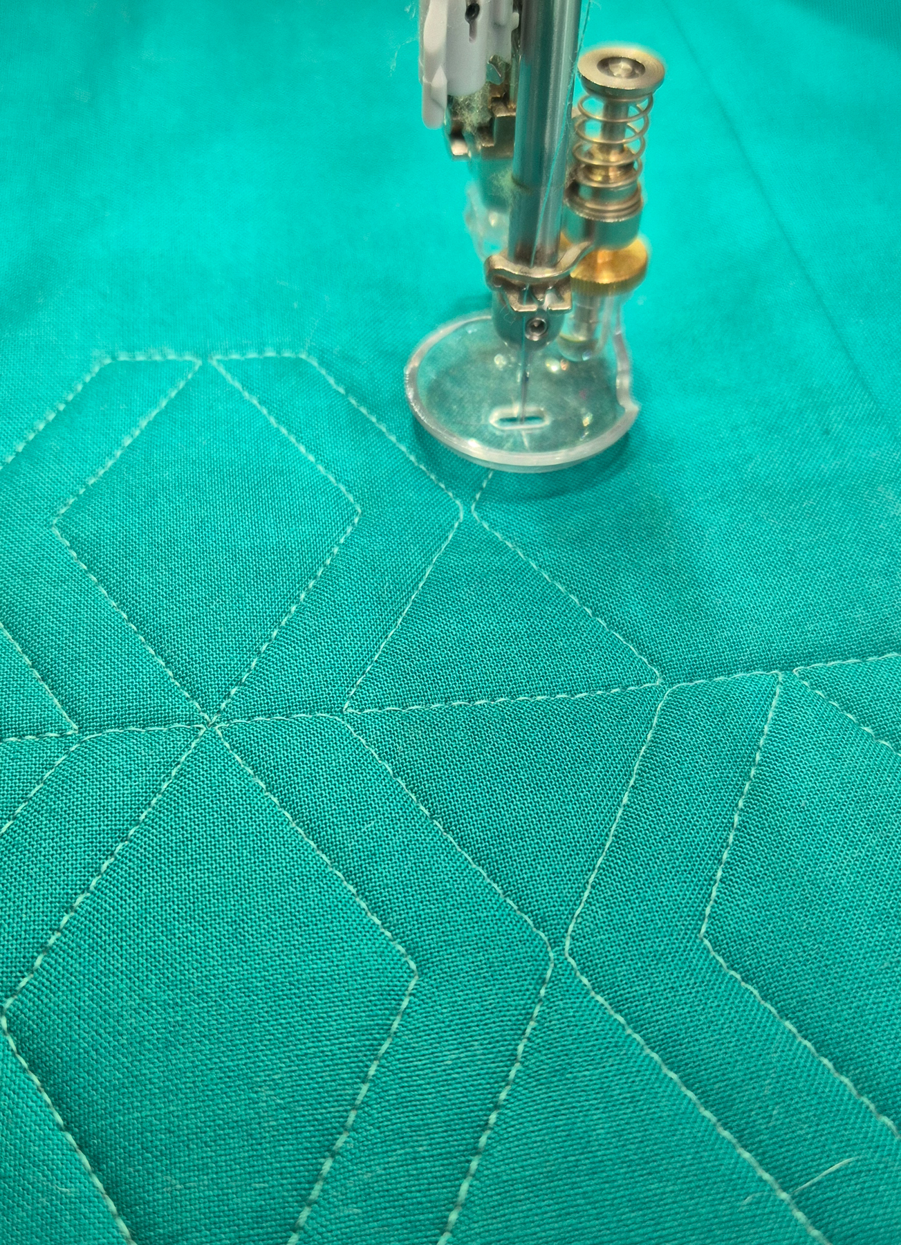 Now everything is set, you can press start. When all is well the Q-matic will stitch nicely along the bottom edge of the design, leaving out the diamond shapes while also filling the octagons.
