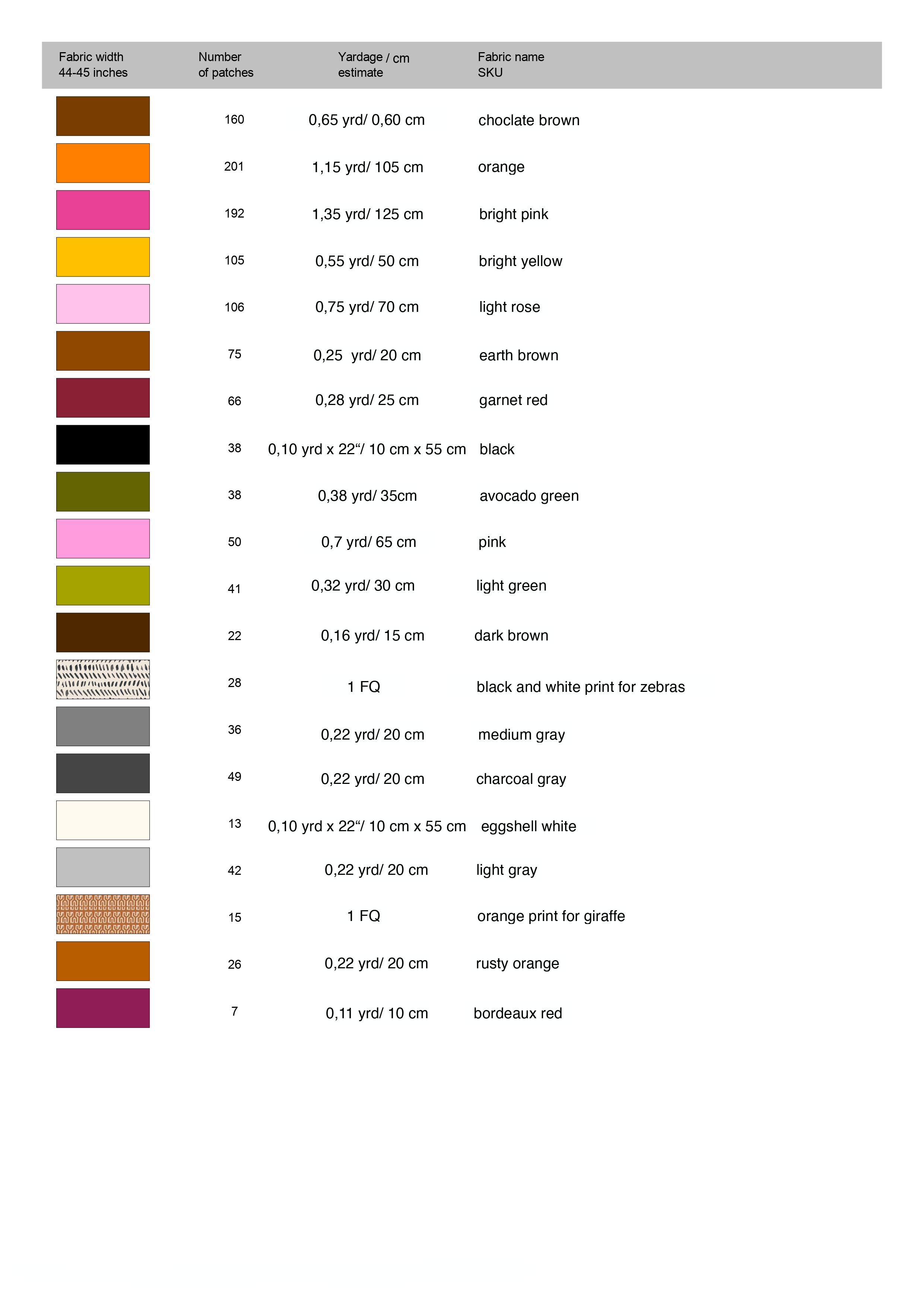 Home » Quilt Safari: Material Requirements + First Giveaway » Fabric consumption