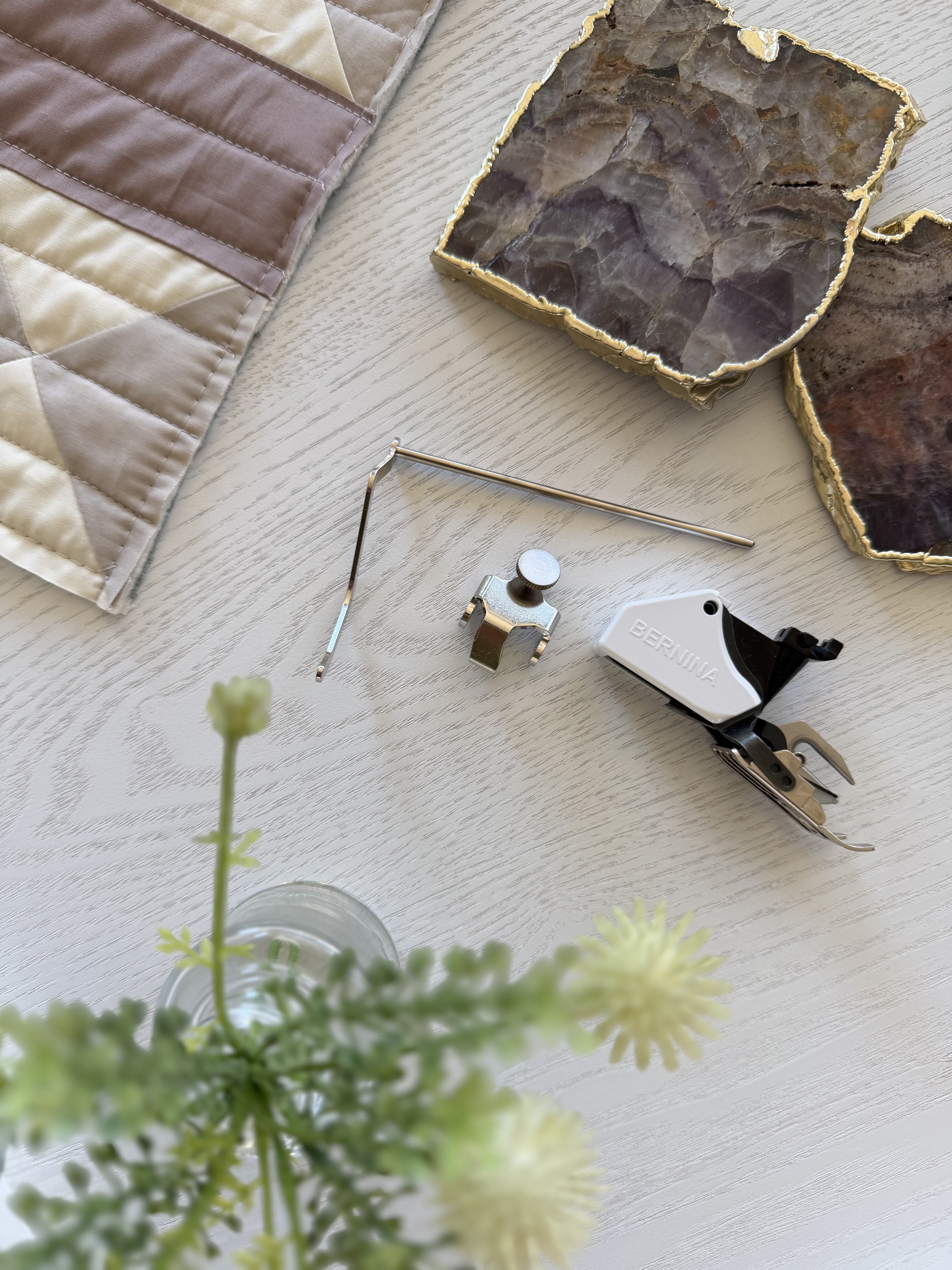 For quilting, I used the BERNINA Three-Sole Walking Foot with Seam Guide #50 with the seam guide attachment. This combination was key to achieving consistent, evenly spaced quilting lines.