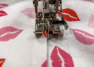 Home » Sew Mommy and Me Valentine’s Day Aprons with Heart Appliqués » Edgestitch foot 10D to attach pocket