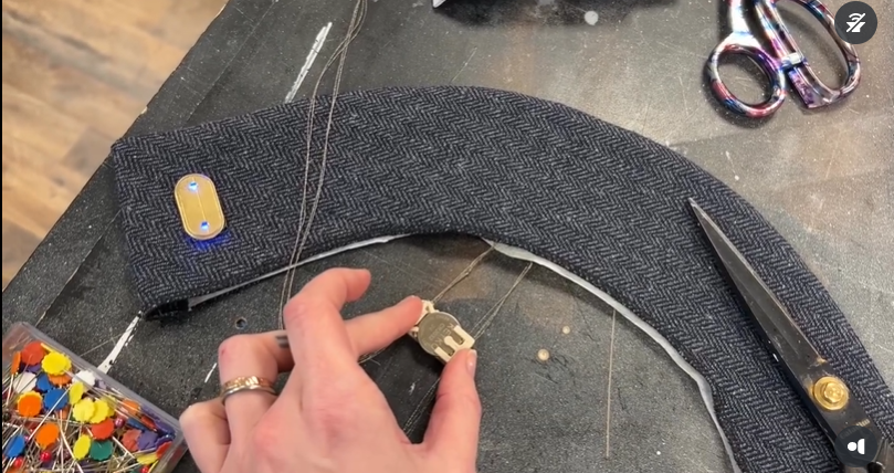 When starting and ending your stitch, be sure to leave a long length (at least 3″) of thread to be able to connect the thread to our future additions of battery pack and LED.