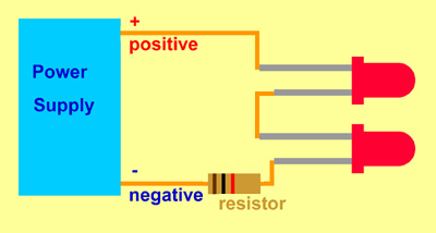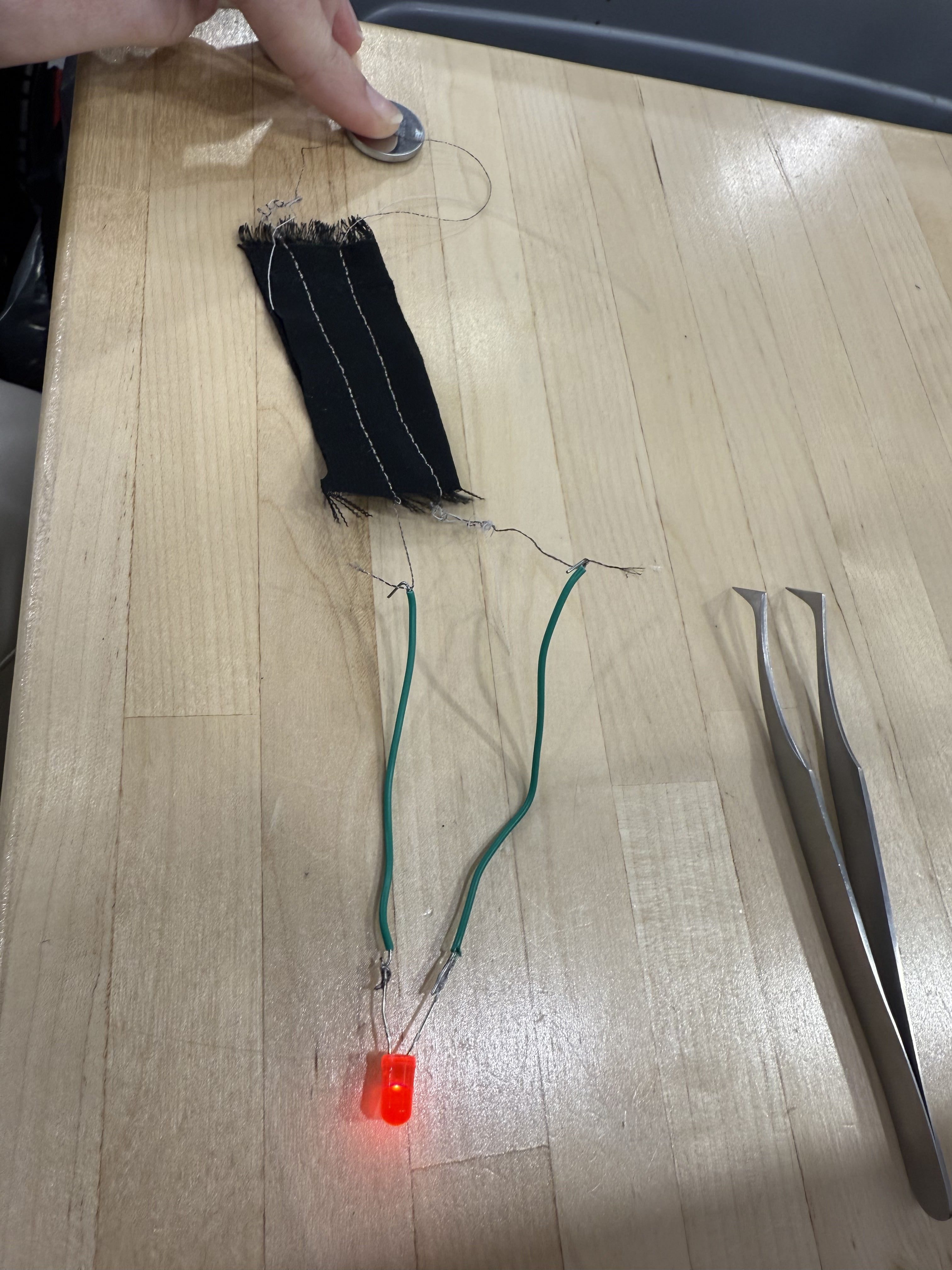 Electricity works by closing a loop from a power source to the LED and then back to the power source. This loop cannot cross at any point, so your stitching must be parallel and never touch. Note: We will not be using any resistors in this project.