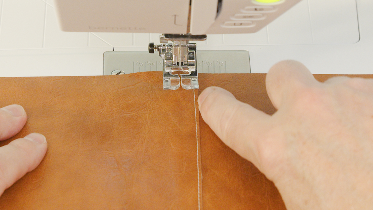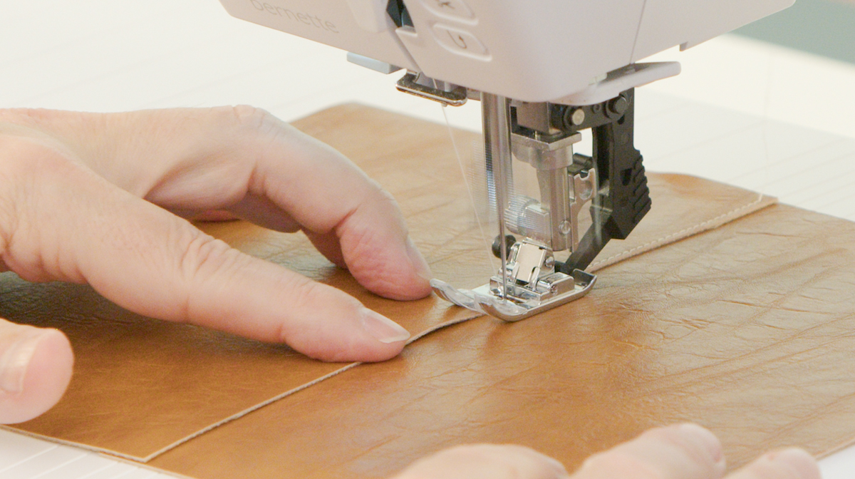 Some faux leathers are less prone to clinging to the presser foot. In such cases, they can easily be topstitched with a regular presser foot. Better yet, a regular foot with Dual Feed.